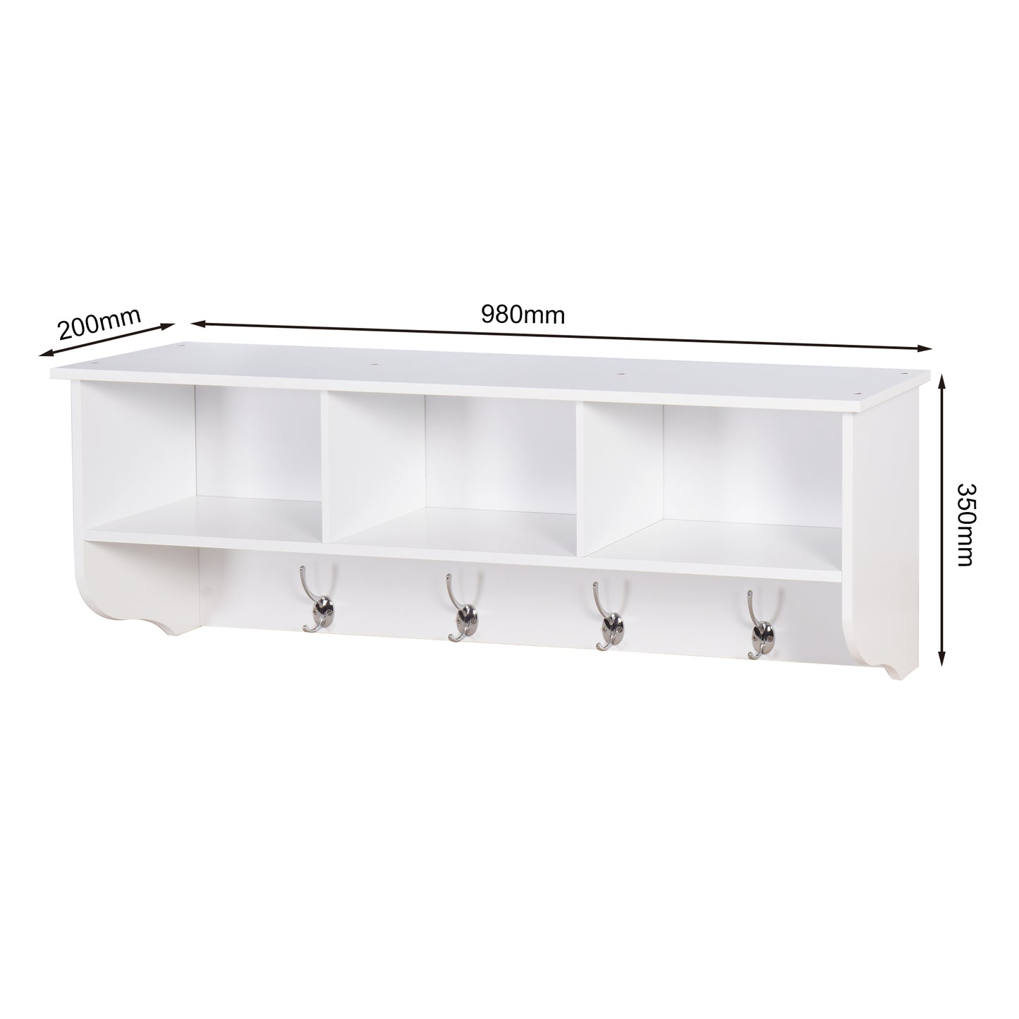 This floating coat rack is stable, durable, and of high quality, suitable for vintage style or modern style, store items on the top shelf, in the three storage cubbies, and on the 4 hooks.