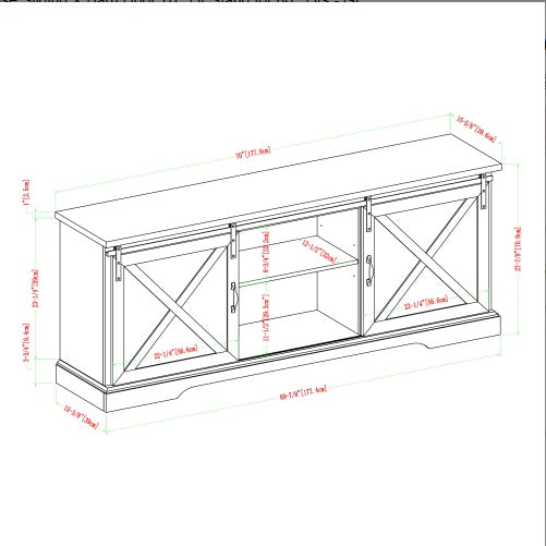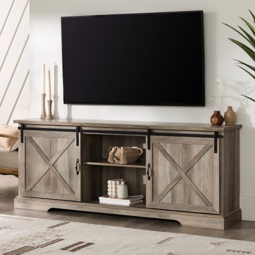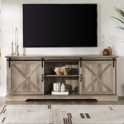 Product Name:Farmhouse Sliding X Barn Door 70" TV Stand for 80" TVs - Grey Wash