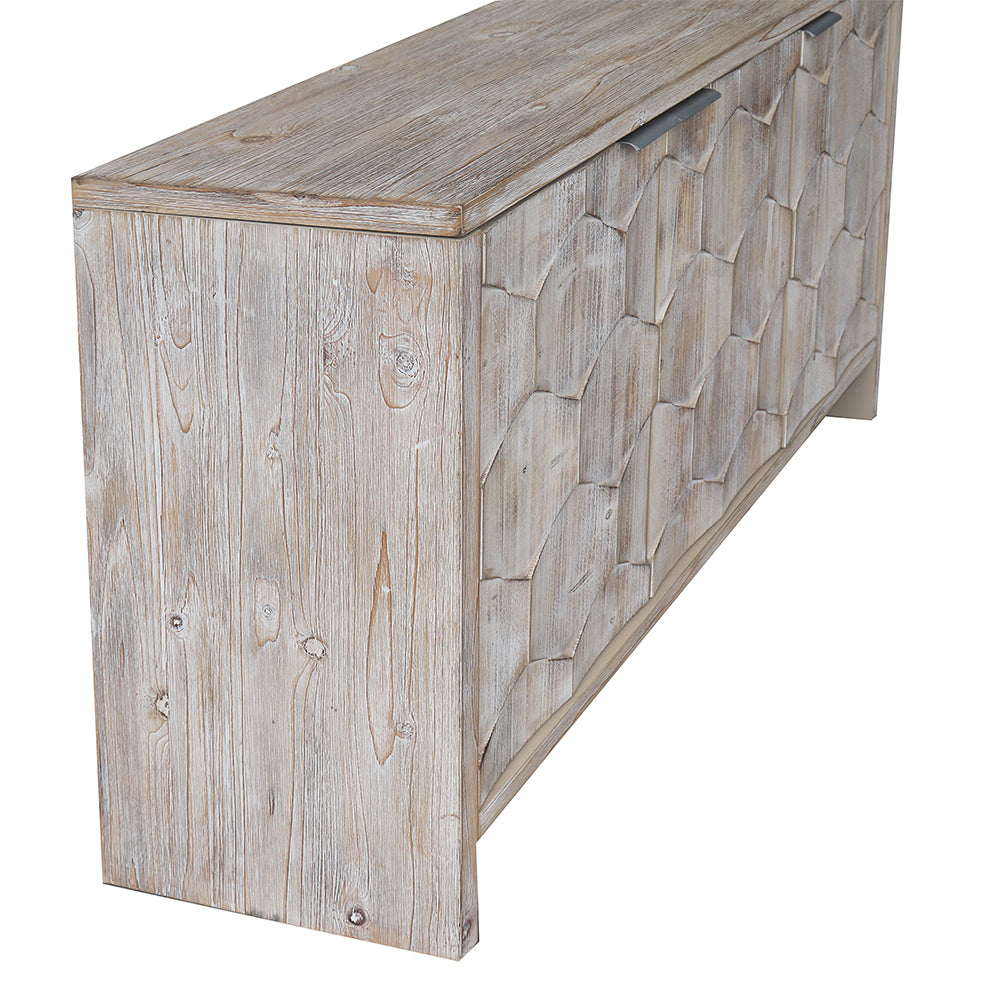 This cabinet effortlessly combines retro beauty and contemporary fashion with its wooden decorative doors featuring a hexagonal pattern. The exquisite craftsmanship and wood texture fulfill your aesthetic desires, while the simple lines and fashionable colors allow for seamless integration with other furniture in your home, adding a unique charm to any room.