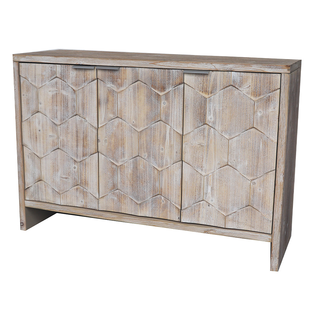 1 x Farmhouse Style 3-Door Wooden Accent Cabinet