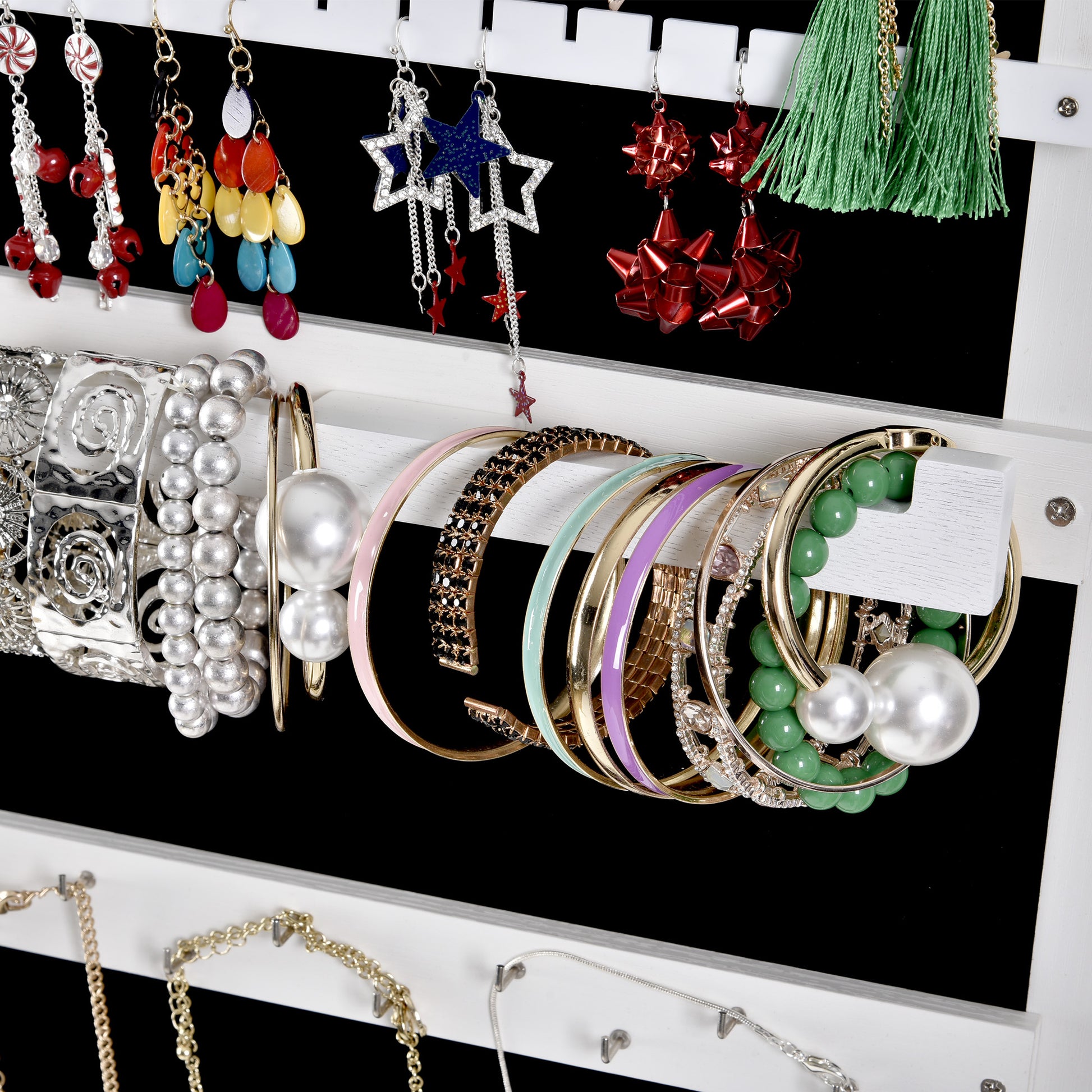 Secure key lock: cabinet side with a key lock, not only to protect privacy but also to protect security, and has a small internal mirror that allows you to try on jewelry without having to close the door.·