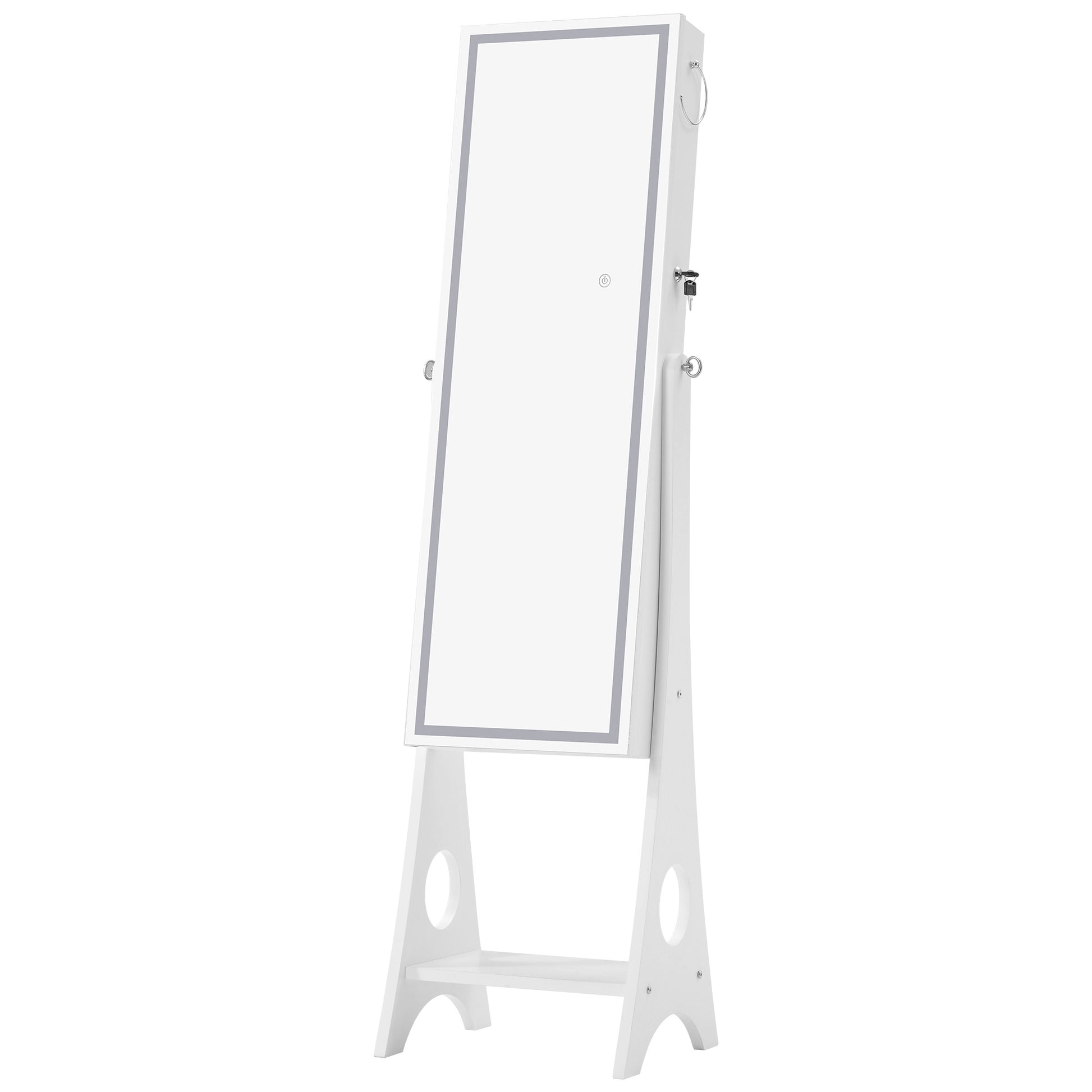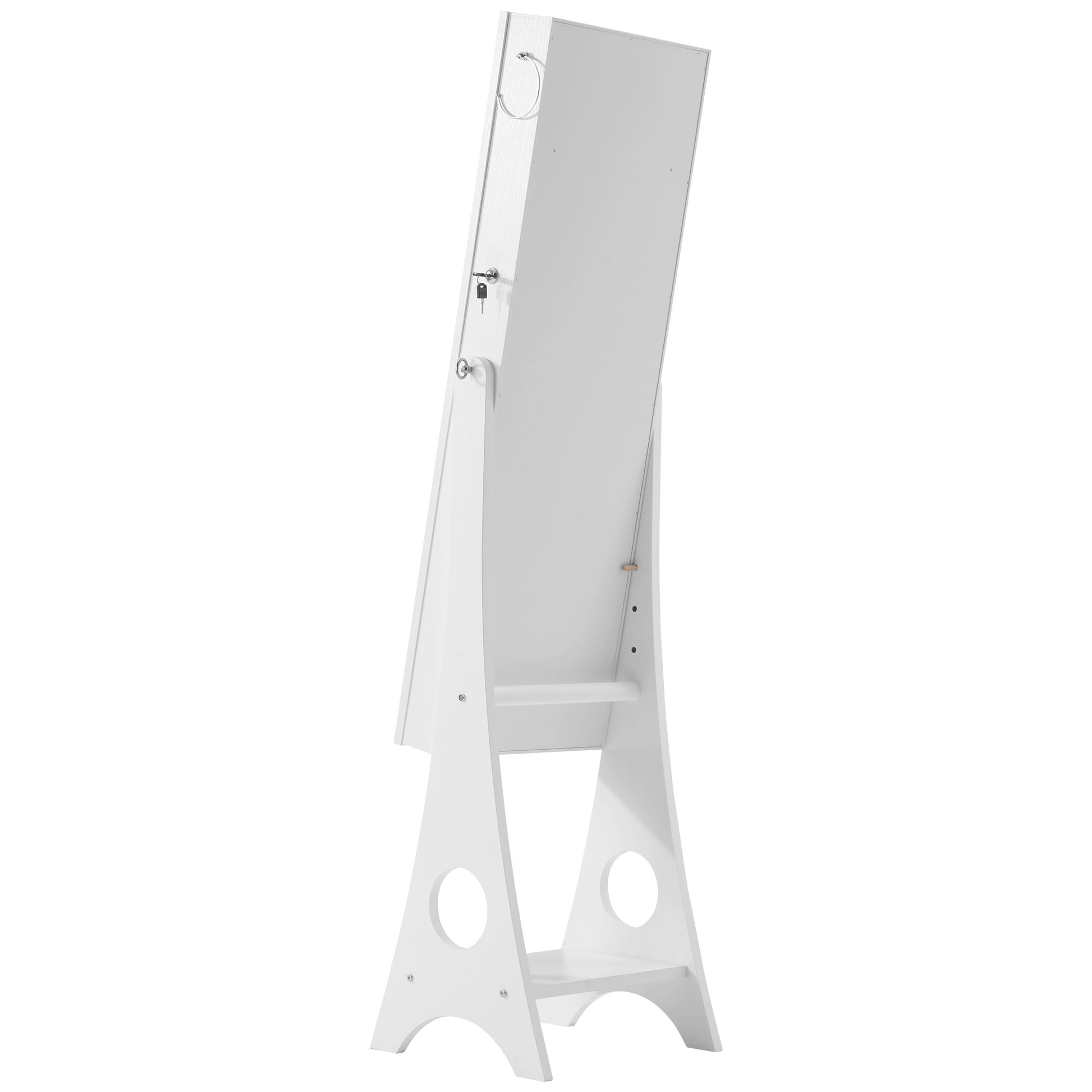 Add a touch of glamour inside your vanity and dressing room with this full-sized body mirror. It also functions as a jewelry holder with safety locks, to safe keep your jewelry collection.