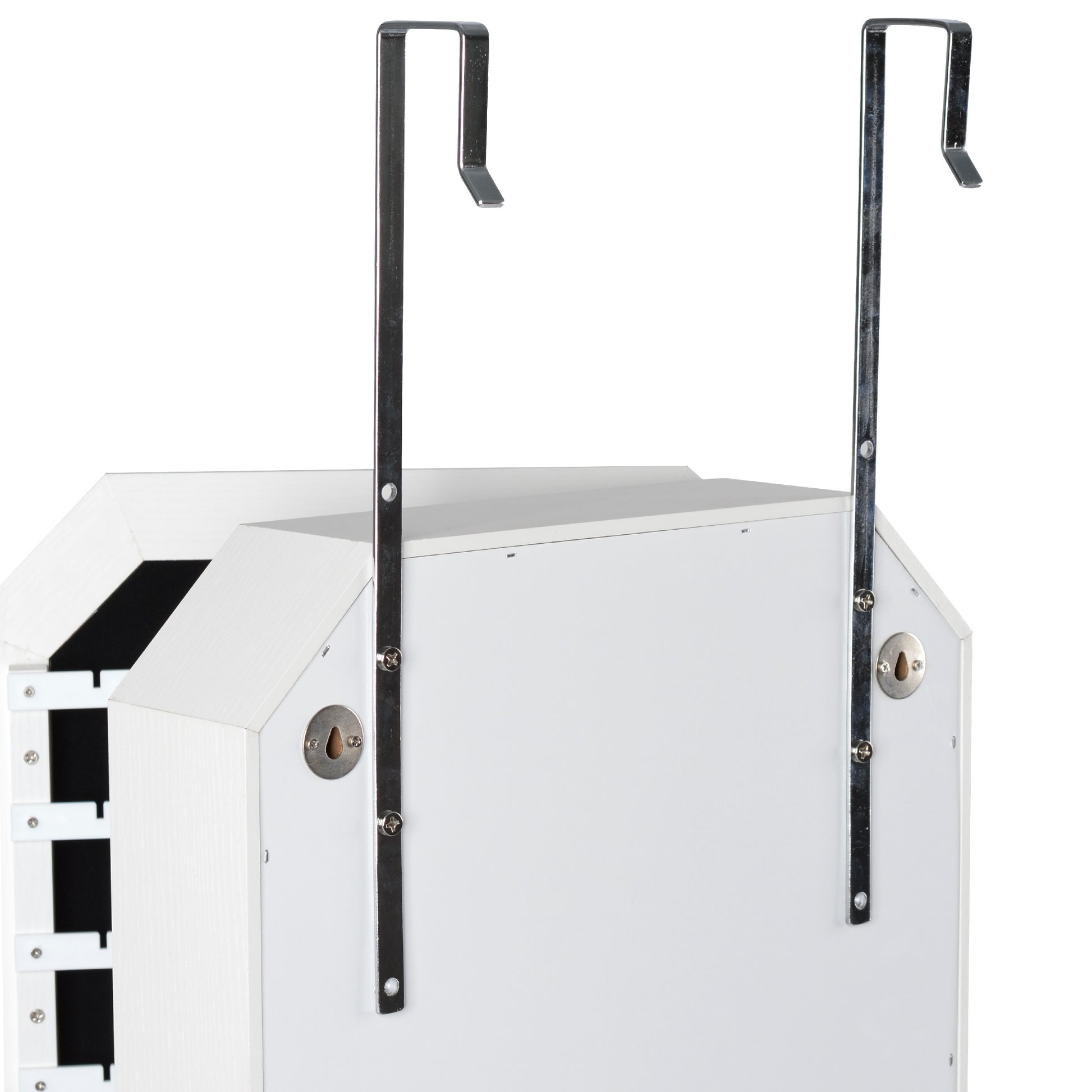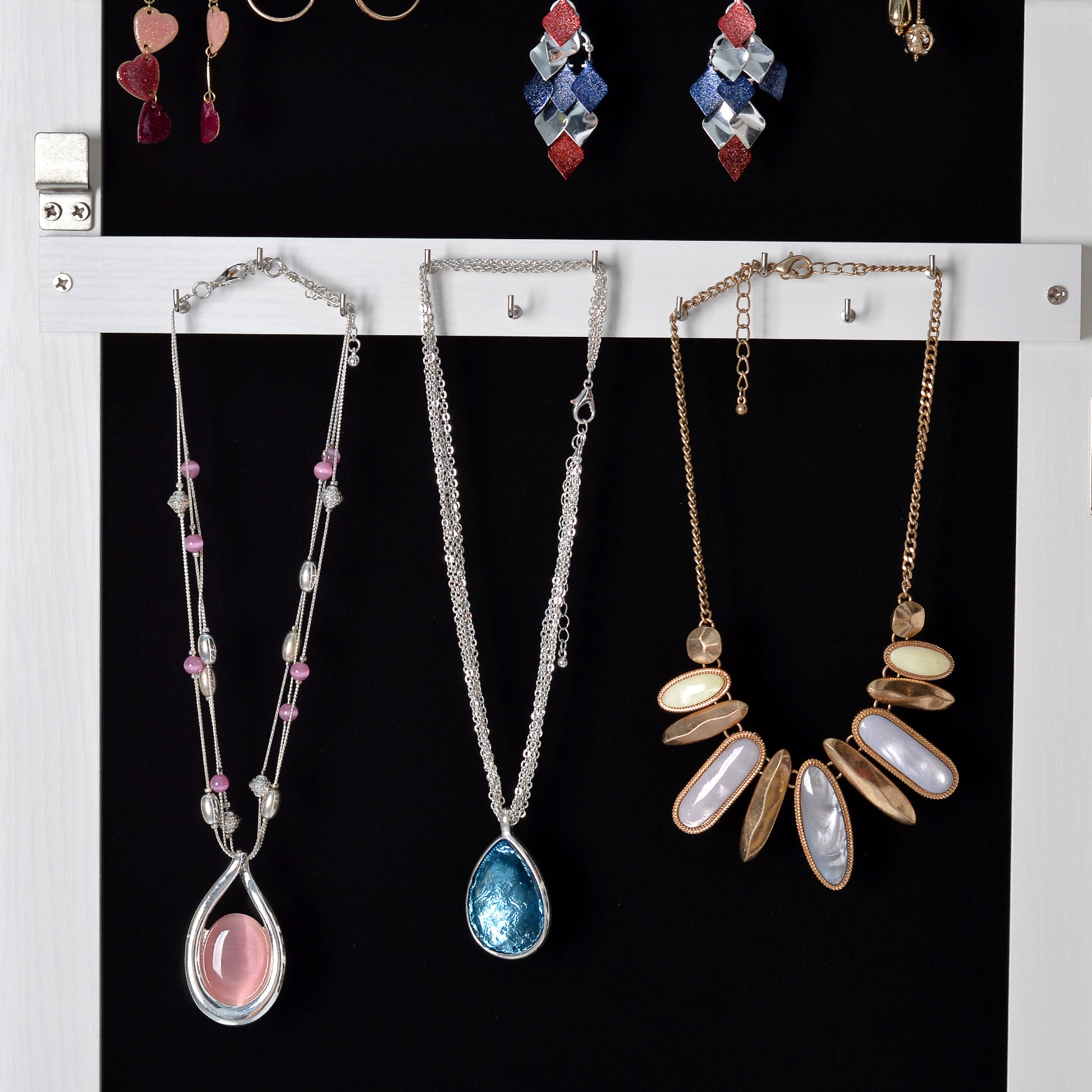 It is equipped with hooks so it can be hung on the door or wall for convenient access, and it keeps your jewelry organized and easily accessible.
