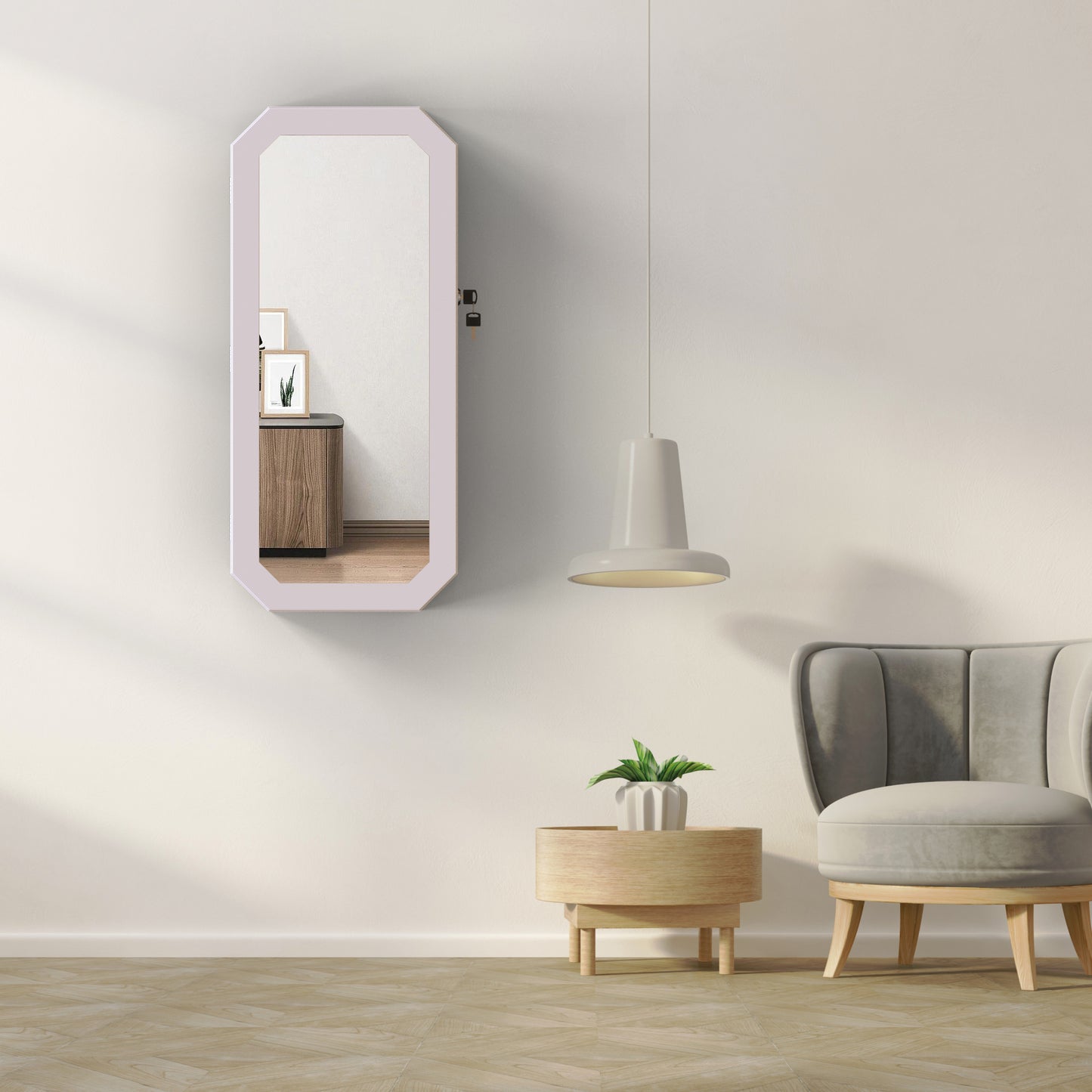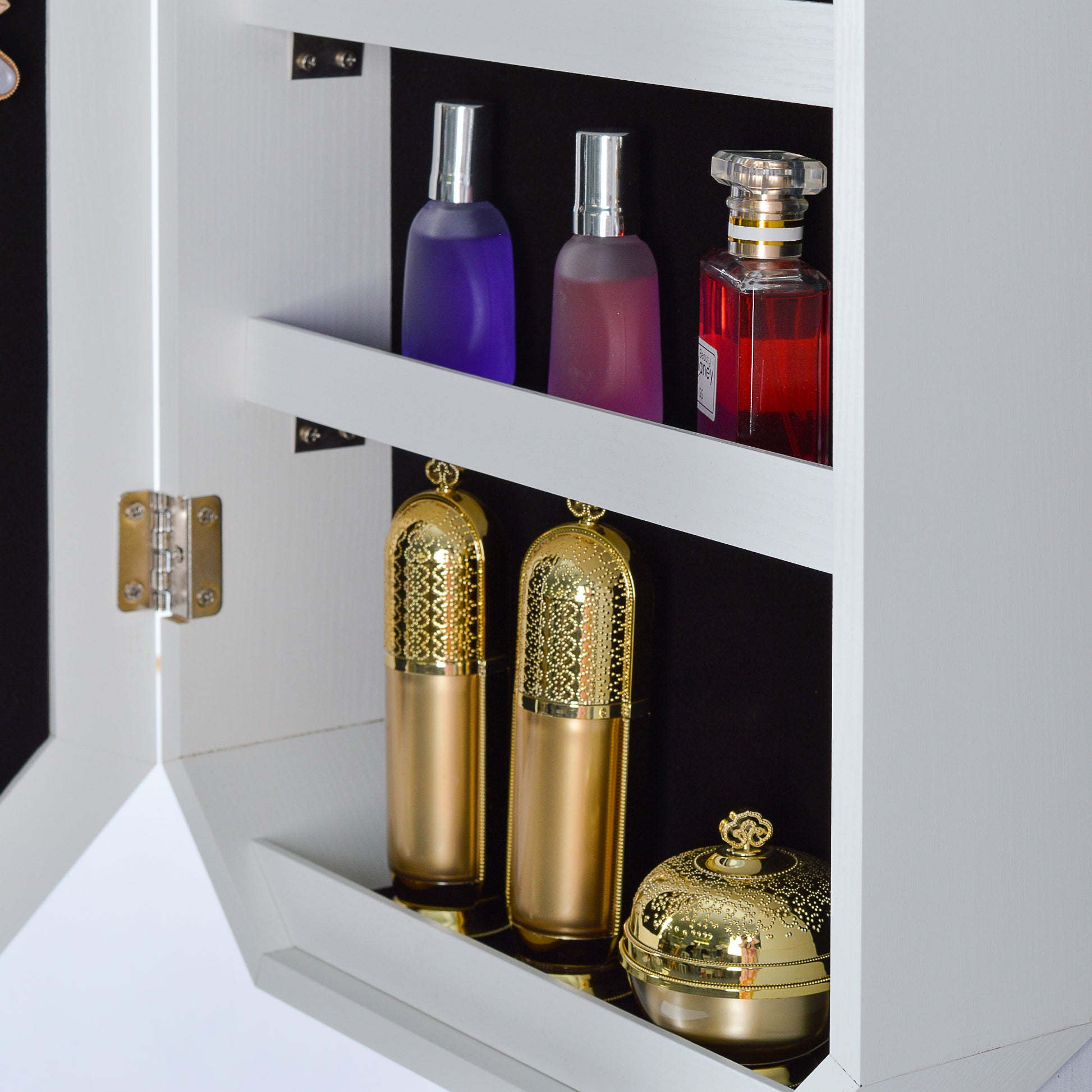 Fashionable Octagon Rimmed Mirror and Jewelry Storage Cabinet- White