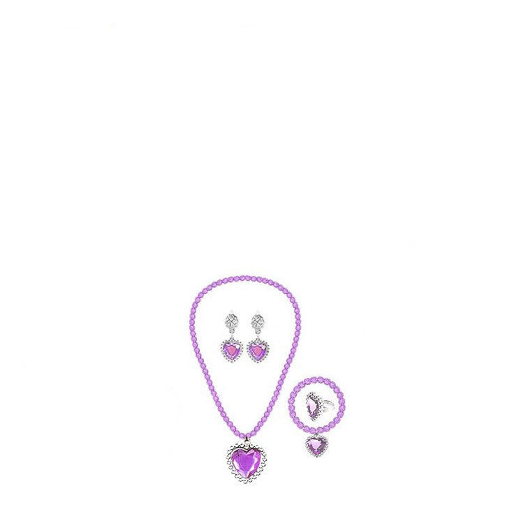 Girls beaded necklace bracelet ear clip ring five-piece set