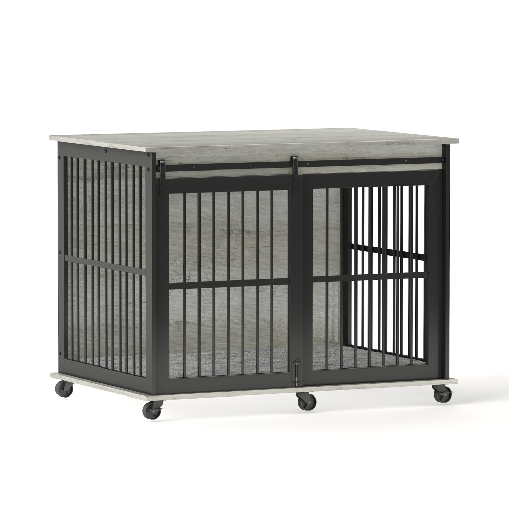 Grey Furniture Dog Crate with Sliding Iron Door and Comfort Mat
