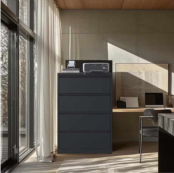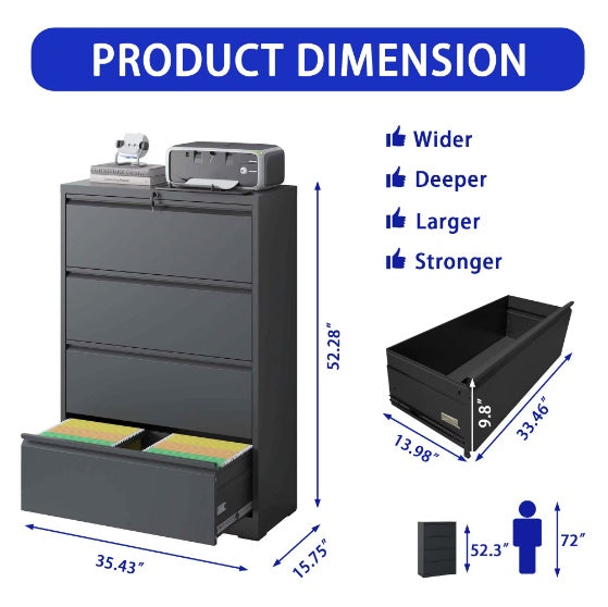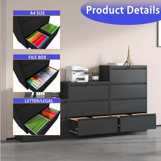 Product Name: Lateral Filing Cabinet 4 Drawers, Black Filing Cabinet with Lock, Lockable Filing Cabinet for Home Office, Locked Metal Filing Cabinet in Legal/Letter/A4/F4 Size