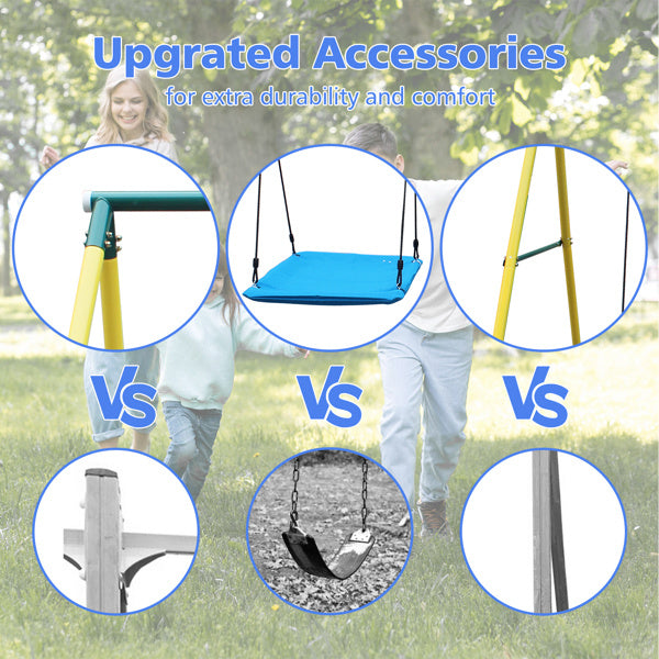 - 2 Seat Swing: The swing set provides a saucer swing and a seat for 2 children to play on at the same time. The swing set offers a variety of ways to swing, hang or soar, enough for kids and their friends to have fun.