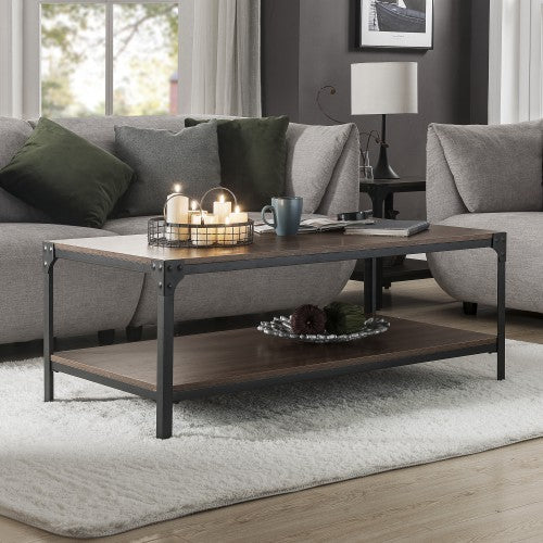 Description With an industrial style, this coffee table will be an aesthetically appealing piece of furniture for your interior design. Featured with wooden and metal construction, it is the best choice for your decoration since it is suitable for any style. Highlights Made of high-quality manufactured wood, the top and base of this coffee table can provide a total capacity of 150 pounds. The natural wood grain color variation design gives the table an industrial style. It is a good choice for your room decor. The metal frame with a black finish can provide you strong support. The four protectors on the edge can enhance stability. Lower shelf for extra storage needs Easy to assemble Advantages 1. Decent Profits 2. We produce this item in a big factory which has a low damage and defective rate. 3. Compared with the same quality, the price is competitive.