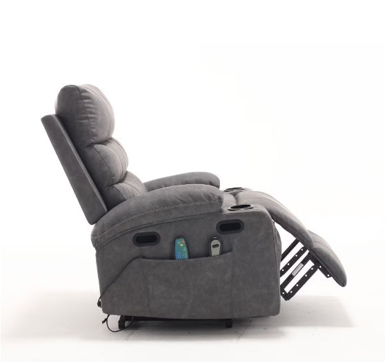 Product Name: 21" Seat Width, Large Size Electric Lift Recliner Sofa for Seniors, 8 Point Vibration Massage & Wood Heating, Remote Control, Side Pockets & Cup Holder, Comfortable Fabric, Over-Padded Arm PU