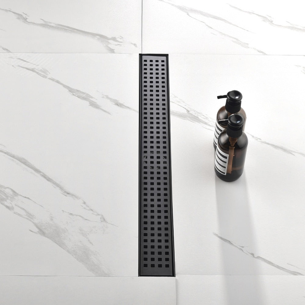 Linear Shower Drain Removable Quadrato Pattern Grate - Black