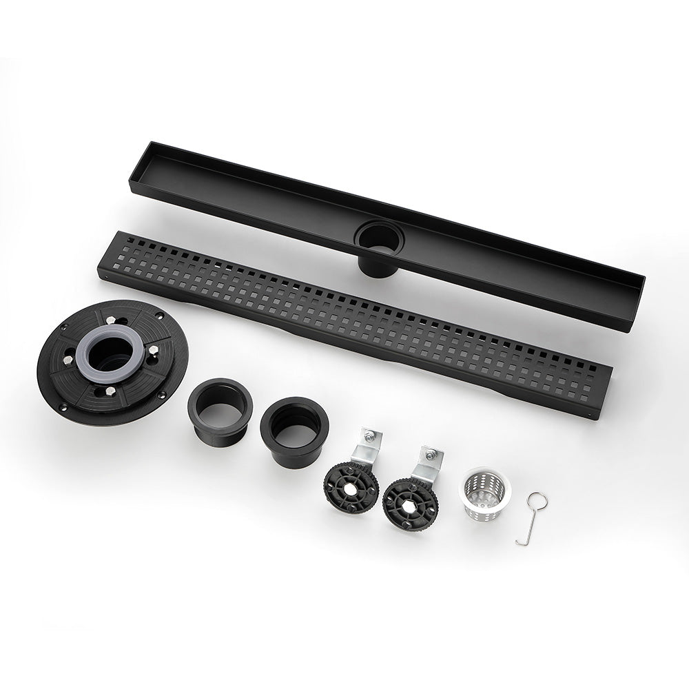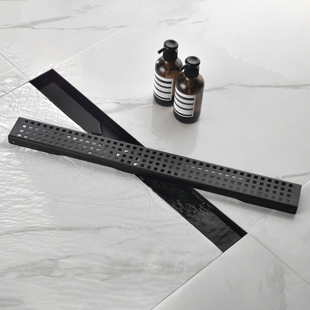 Linear Shower Drainwith Removable Quadrato Pattern Grate- Black