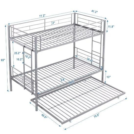 PRODUCT NAME: METAL BUNK BED WITH TRUNDLE SILVER