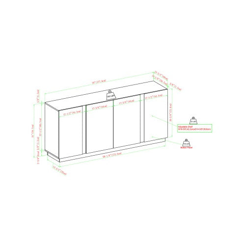 - 4 adjustable shelves for customizable storage