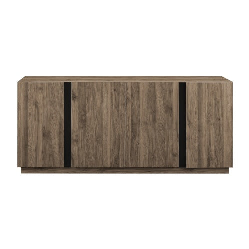 - Vertical, black, metal accent strips lend an ultra-modern look