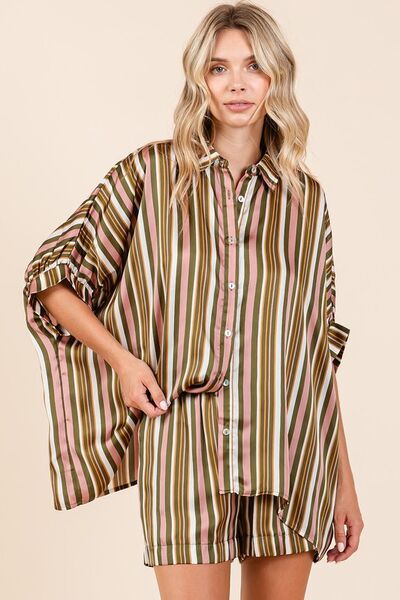 The Drawstring Striped Satin Shorts are a trendy and comfortable option for warm weather. The satin fabric adds a touch of elegance and sheen to the design. Featuring a drawstring waist, these shorts offer a customizable and secure fit. The striped pattern adds a fun and playful element to the style. Pair them with a simple tank top and sandals for a chic and laid-back summer look.