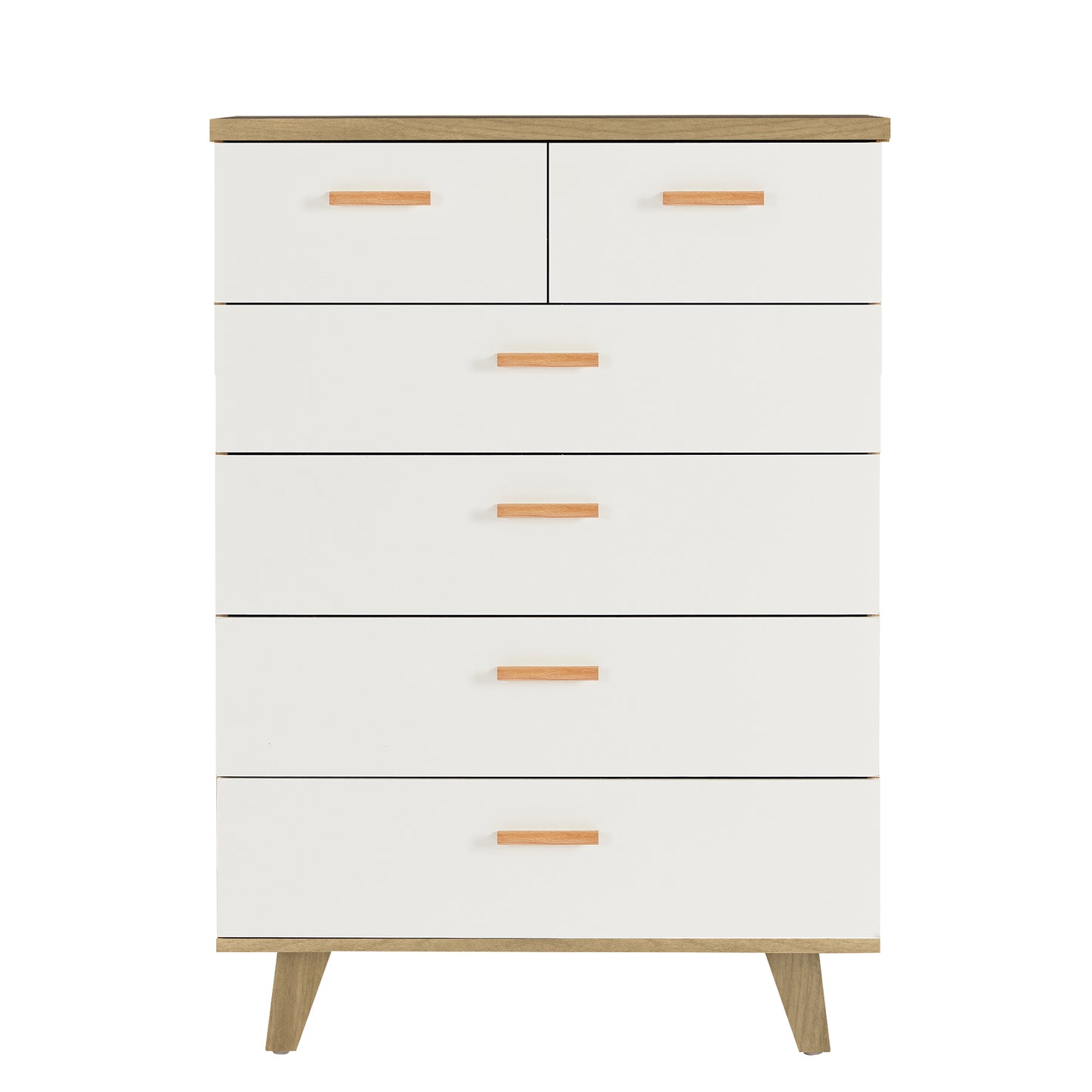 Modern Design Solid Wood Dresser with 6 Drawers for Bedroom and Living Room-White Oak