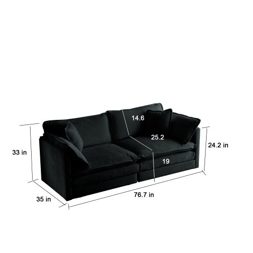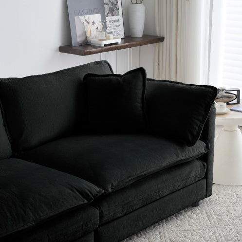 Product Name:Modern Fabric Loveseat Sofa Couch for Living Room, Upholstered Large Size Deep Seat 2-Seat Sofa with 4 Pillows ,Black Chenille