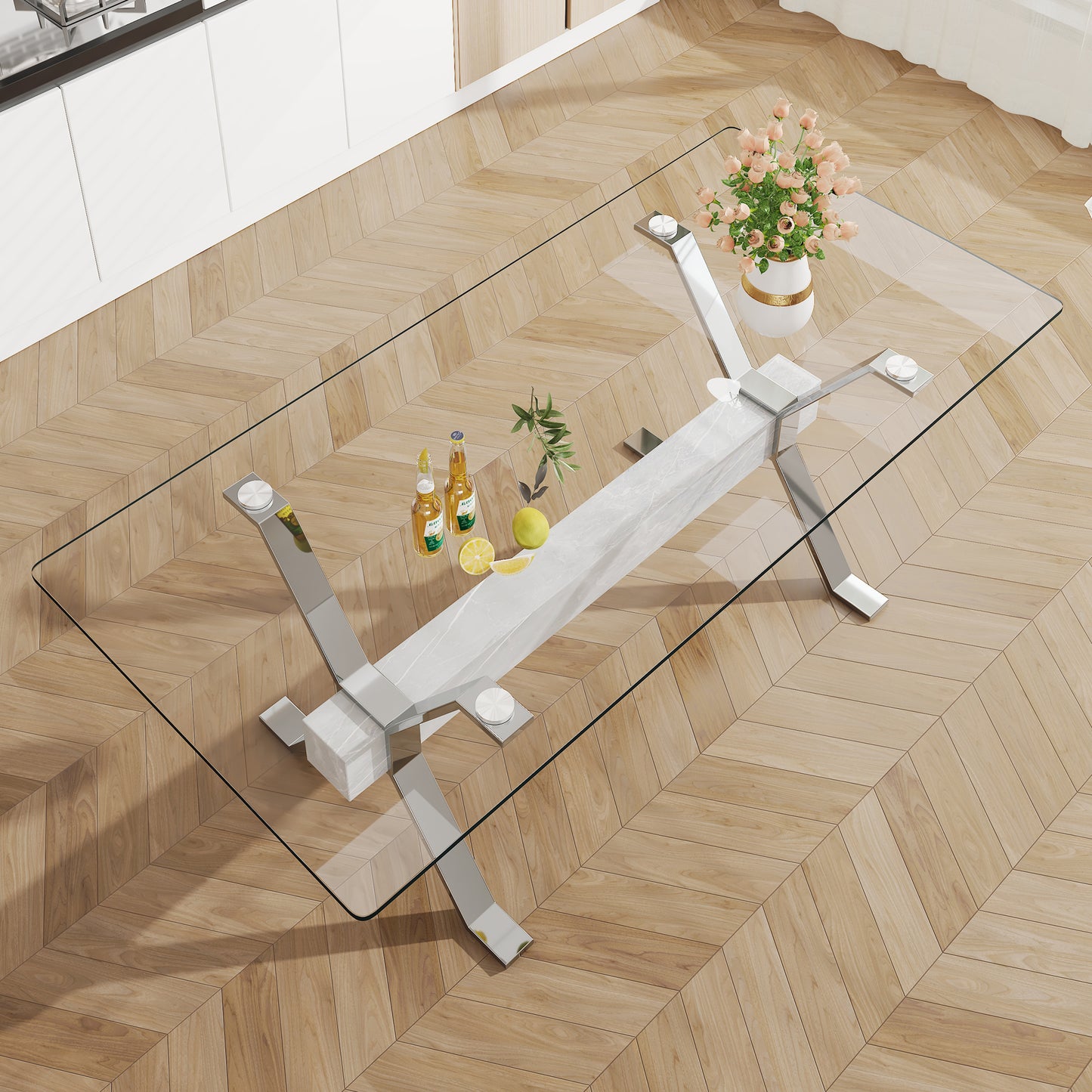Modern Luxury Tempered Silver Chrome Plated Glass Table with White Support Crossbar