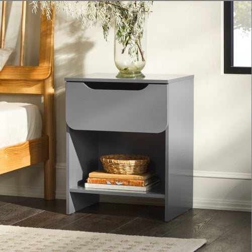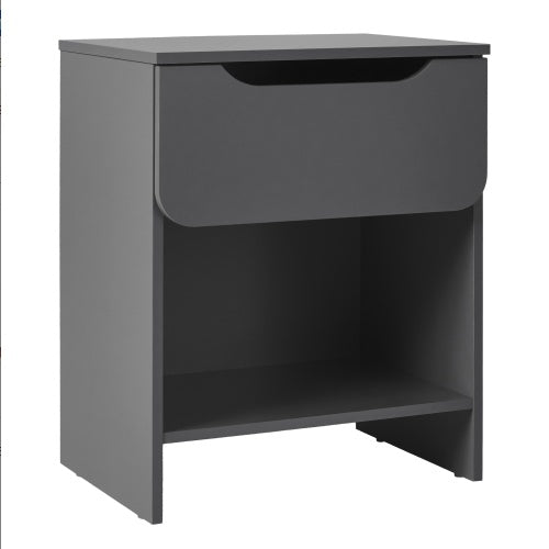 Product Name:Modern Minimalist 1-Drawer Nightstand with Cubby – Dark Grey
