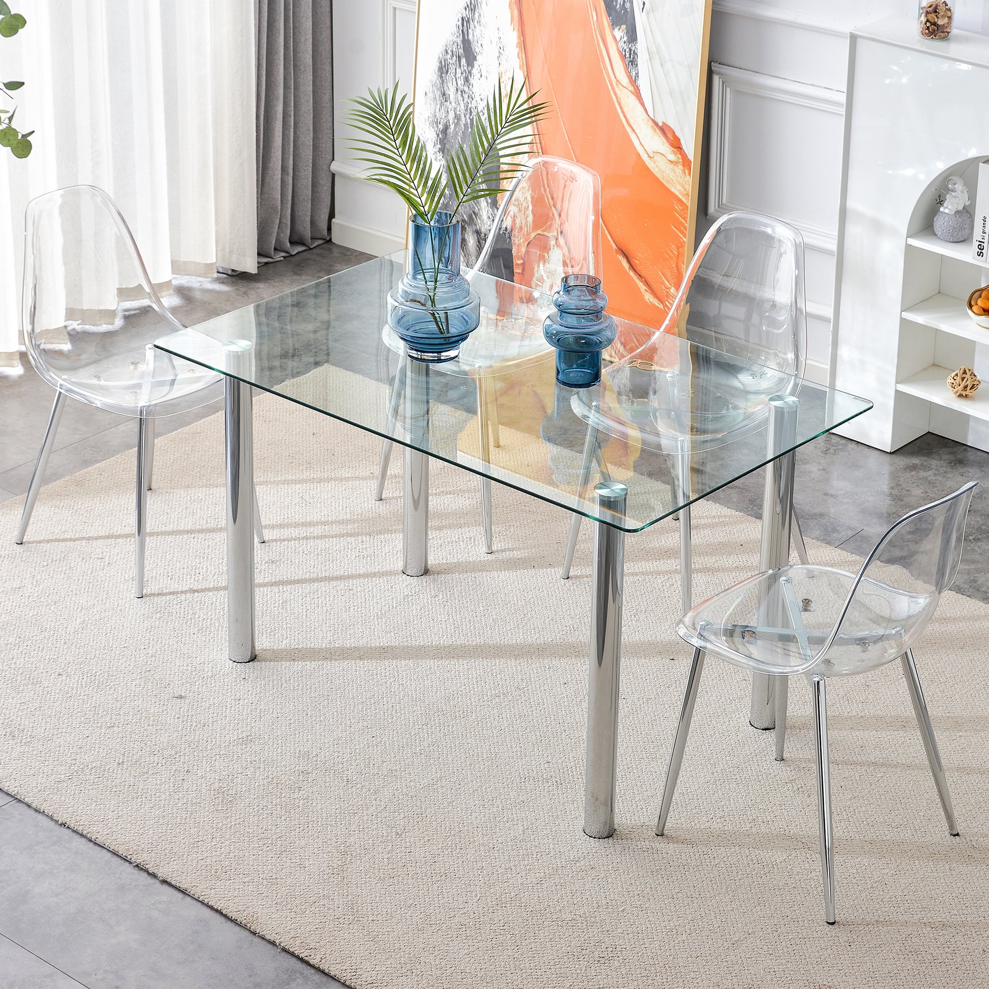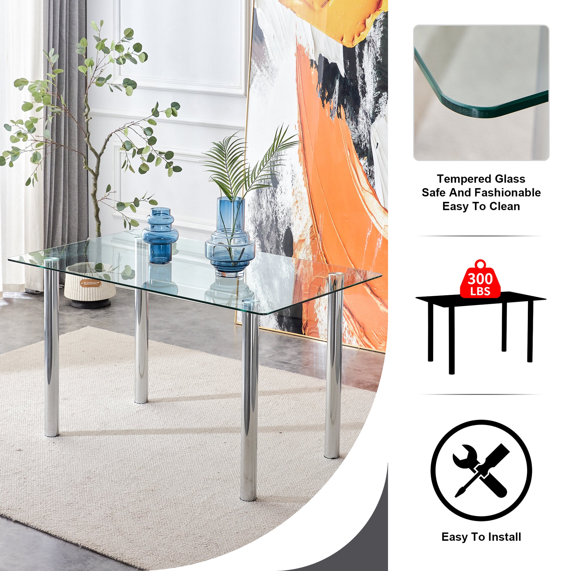 Modern Minimalist Rectangular Tempered Glass Desktop with Silver Metal Legs