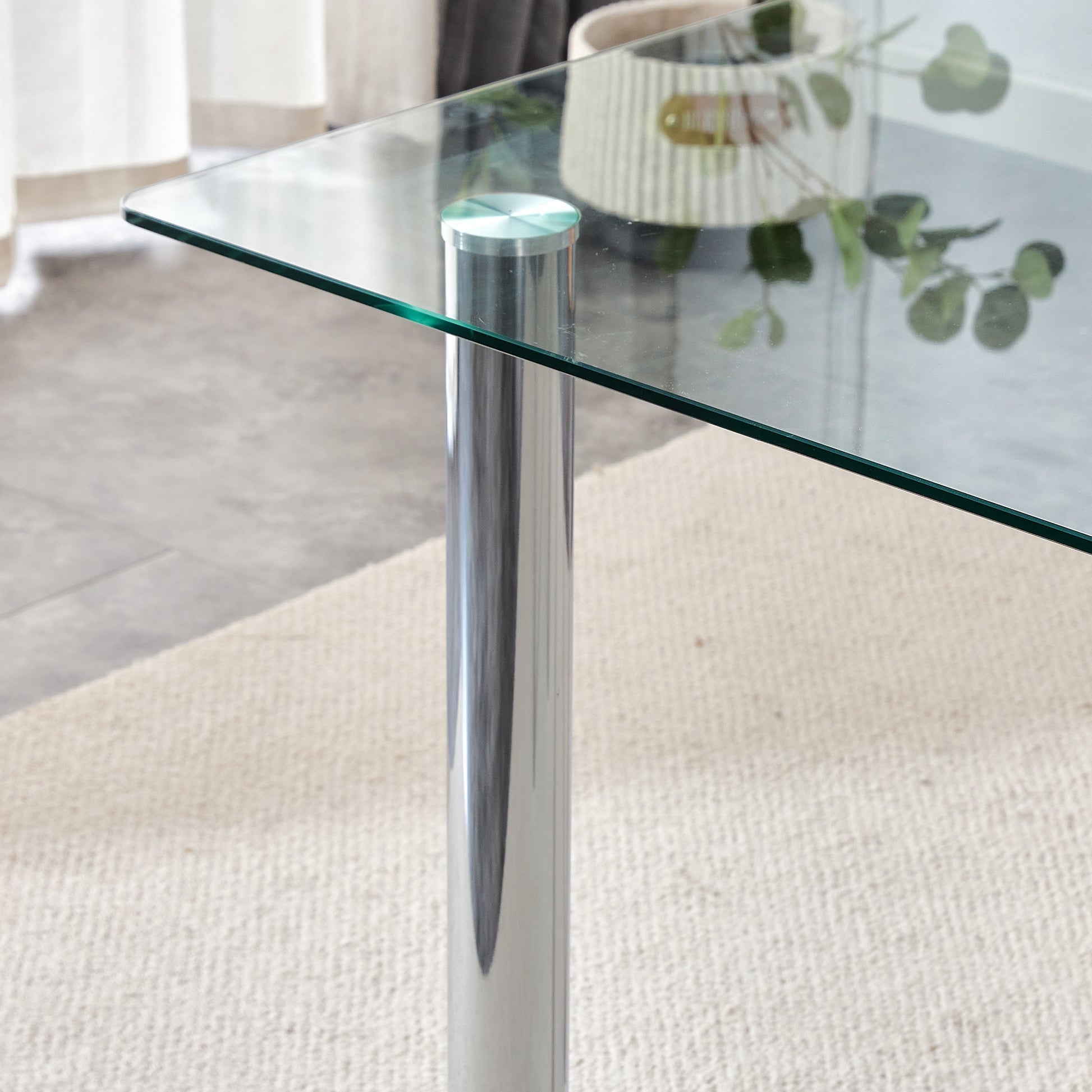 Enhance your dining area with this glass dinner table's ultra-modern design. Its versatile style seamlessly integrates into different settings, elevating your space with a contemporary touch.