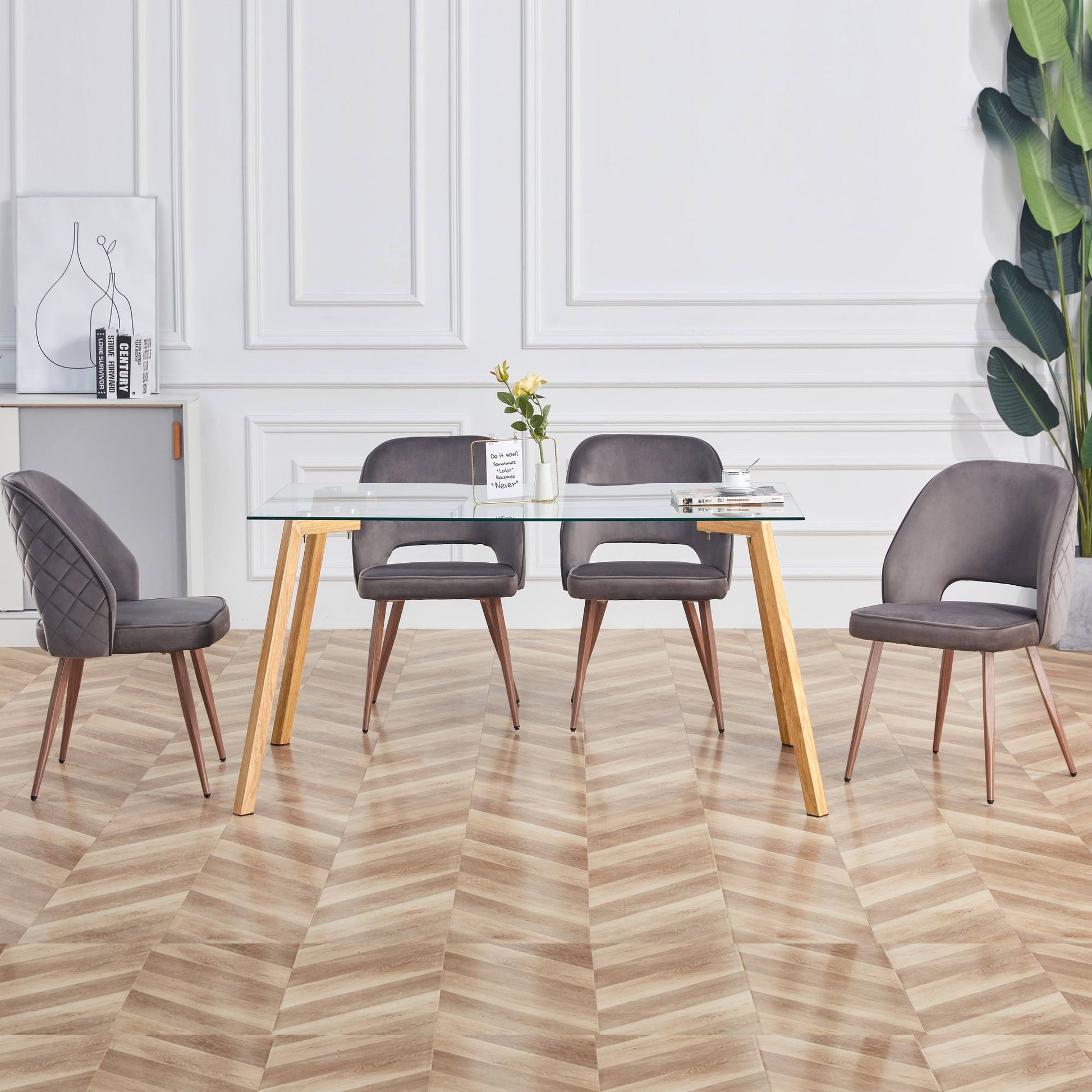 Modern Minimalist Rectangular Tempered Glass Dining Table with Metal Legs for 4-6 People