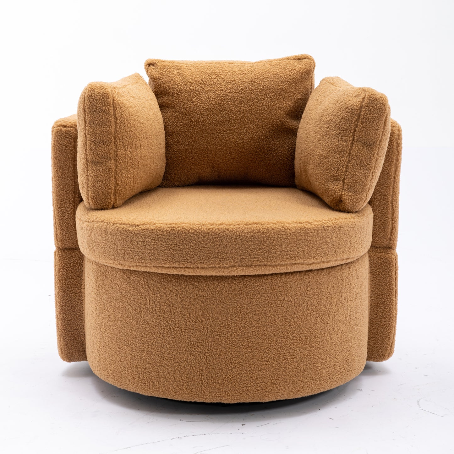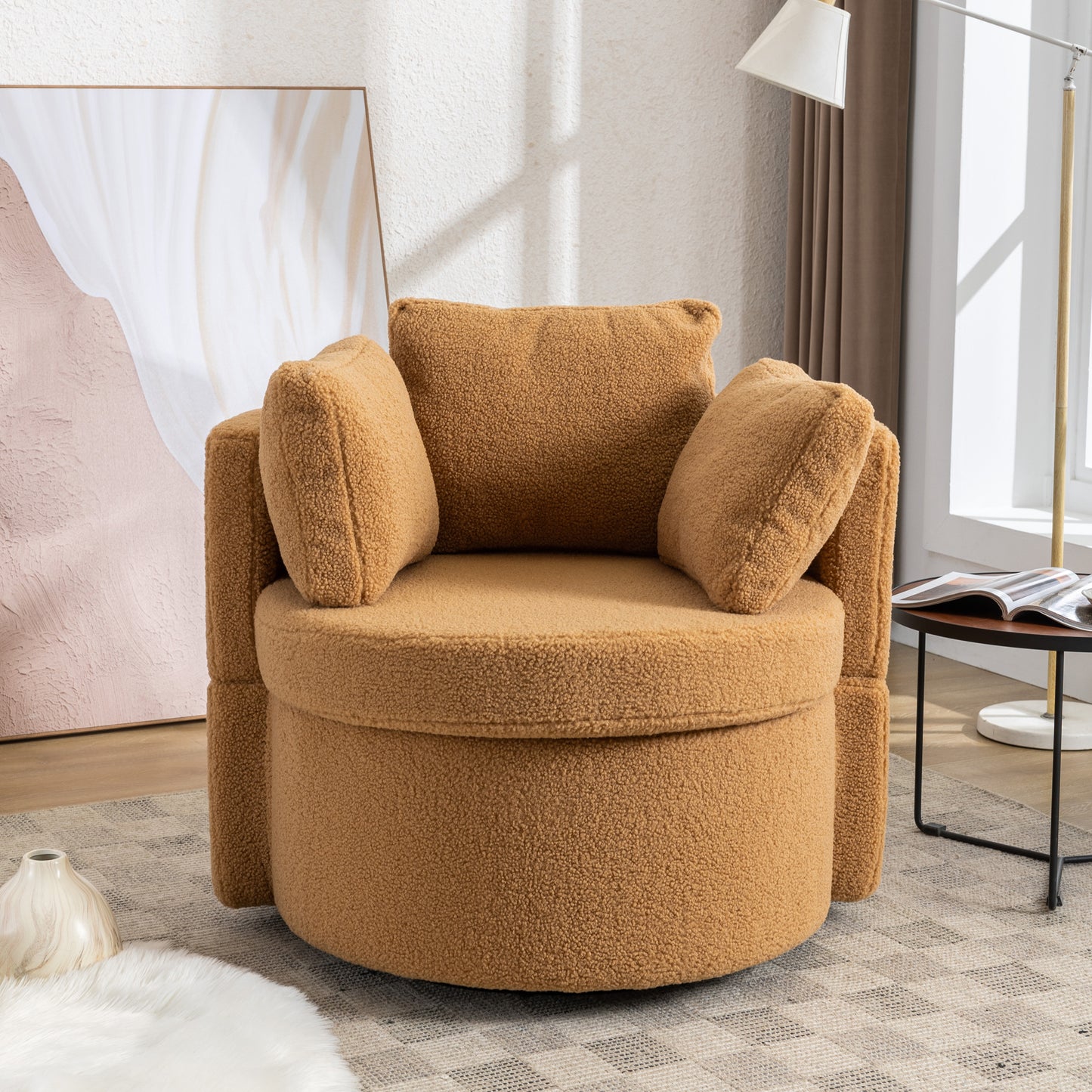 Modern Teddy Fabric Swivel and Storage Lounge Chair with Pillow Set- Brown