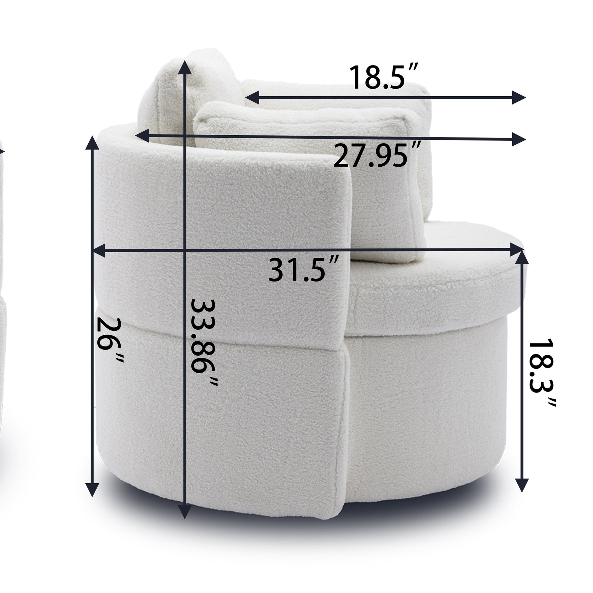 Modern Teddy Fabric Swivel and Storage Lounge Chair with Pillow Set- Ivory