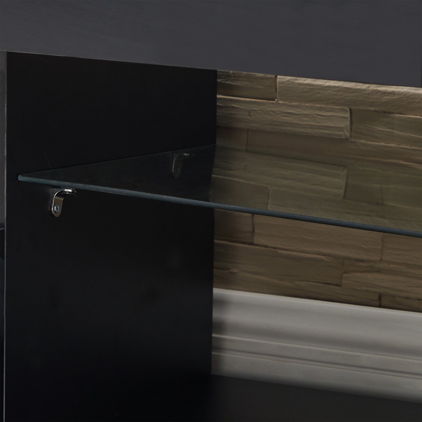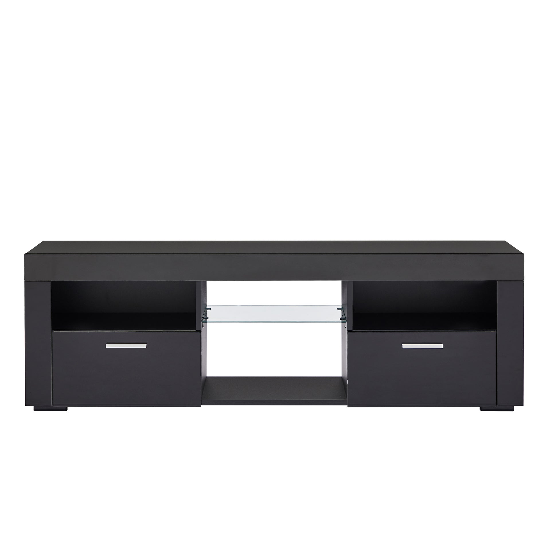 Modern TV Console Storage Media TV High Gloss Organizing Cabinet with LED Light- Black
