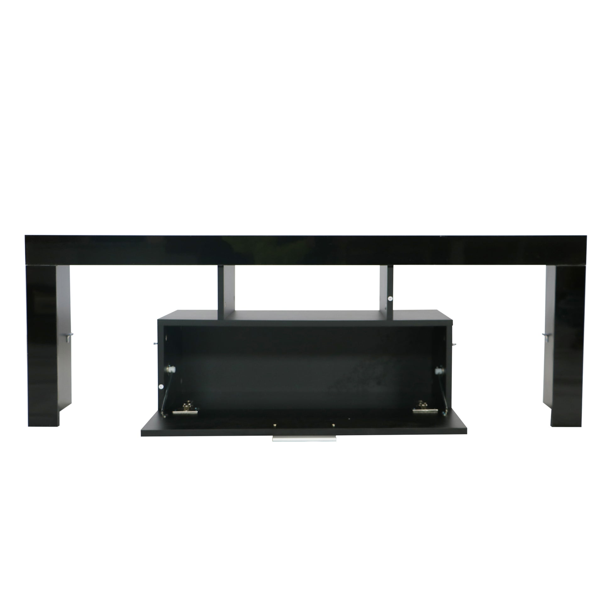 The modern open console features a contemporary design that adds a touch of sophistication to your living room. Its smooth, glossy surface creates a stylish focal point that complements any modern decor.