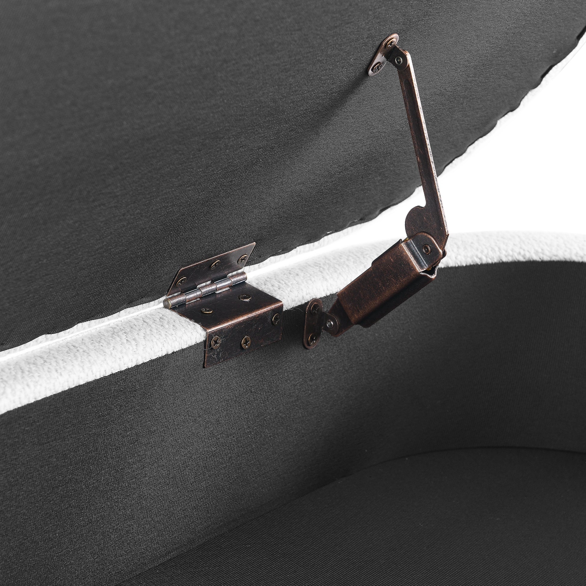 This upholstered storage stool is made from a solid wood frame, connected internally by safety pressure hinges and sturdy hardware. They can keep the lid open all the time to prevent the bench from closing suddenly.
