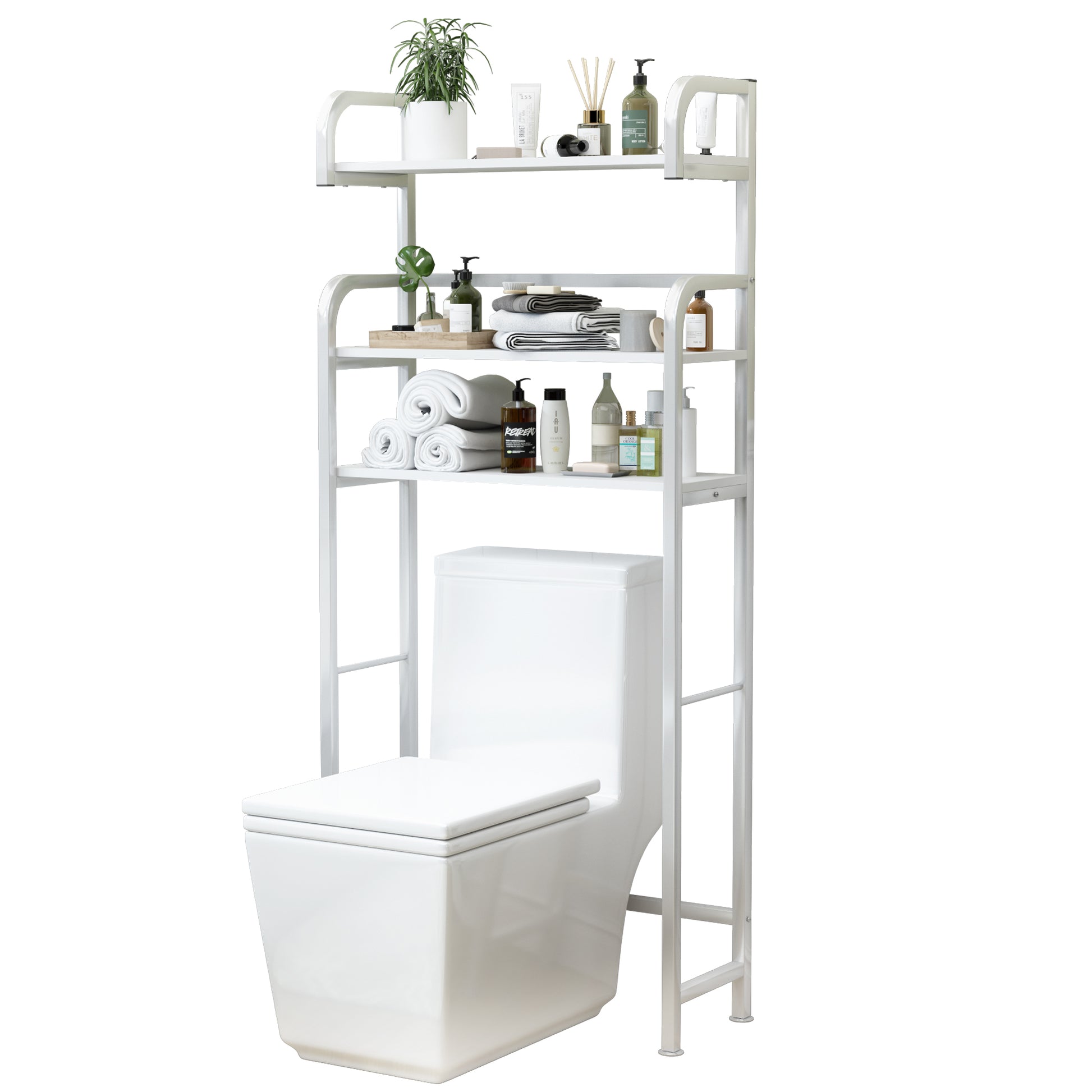 This three-tier shelf provides additional storage to take advantage of unused or counter space in the bathroom, such as towels and various bathroom essentials. The storage rack above the toilet is a good helper to avoid sundries, bringing you a clean and orderly bathroom.