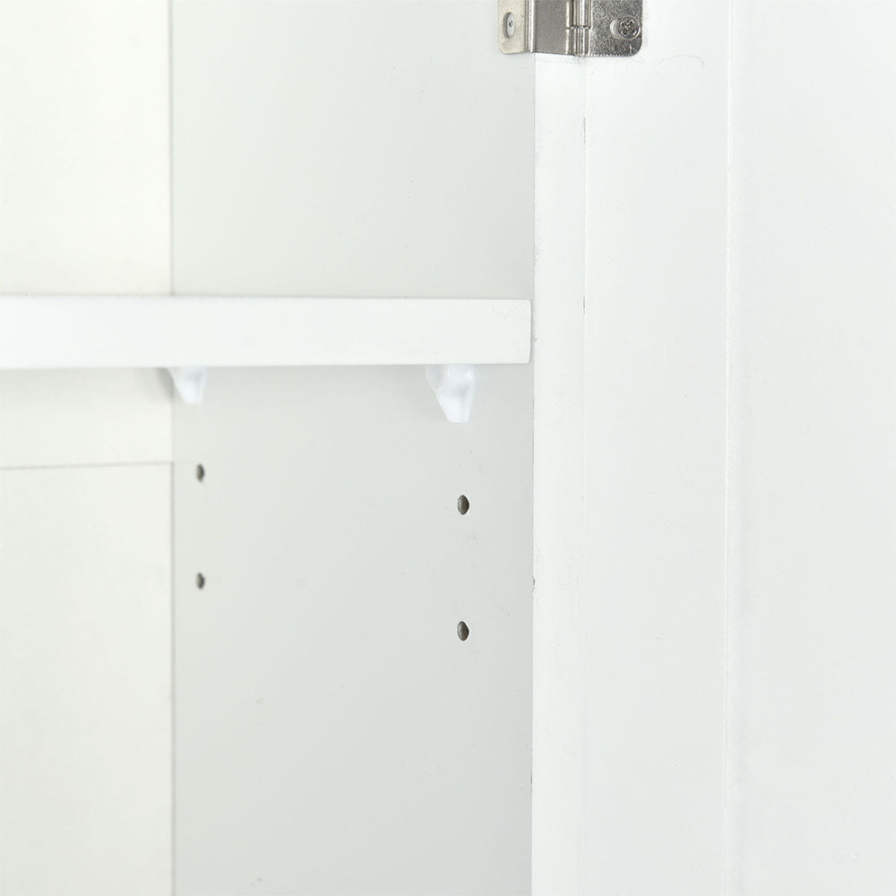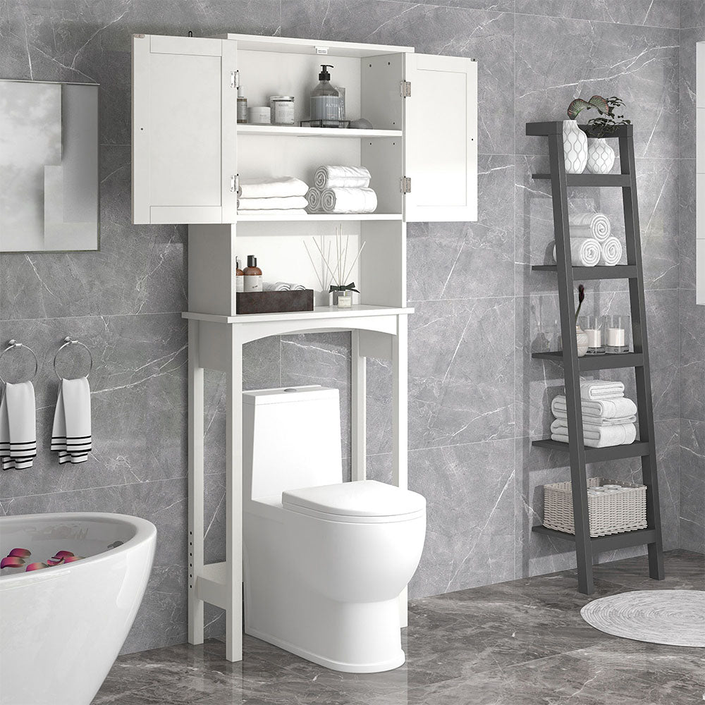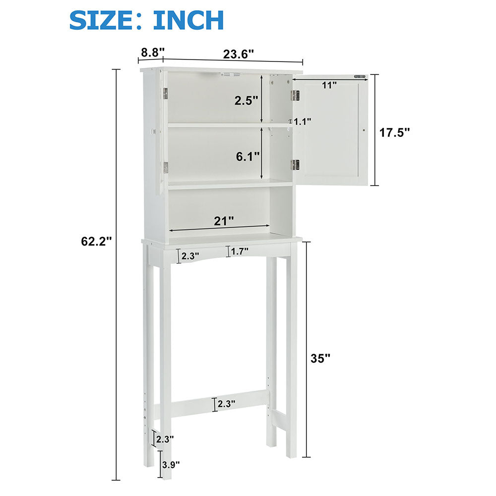 Made from sturdy MDF board with an eco-friendly white painted finish, this organizer is built to withstand daily use. The open space at the bottom provides a convenient spot for placing a toilet or washing machine, while creating additional storage space above. Its classic white finish and modern construction add a touch of elegance that effortlessly complements any existing decor in your home.