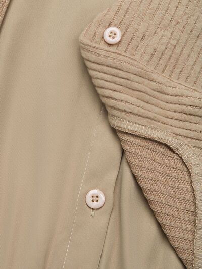 Perfee Fake Two Piece Collared Neck Long Sleeve Midi Dress