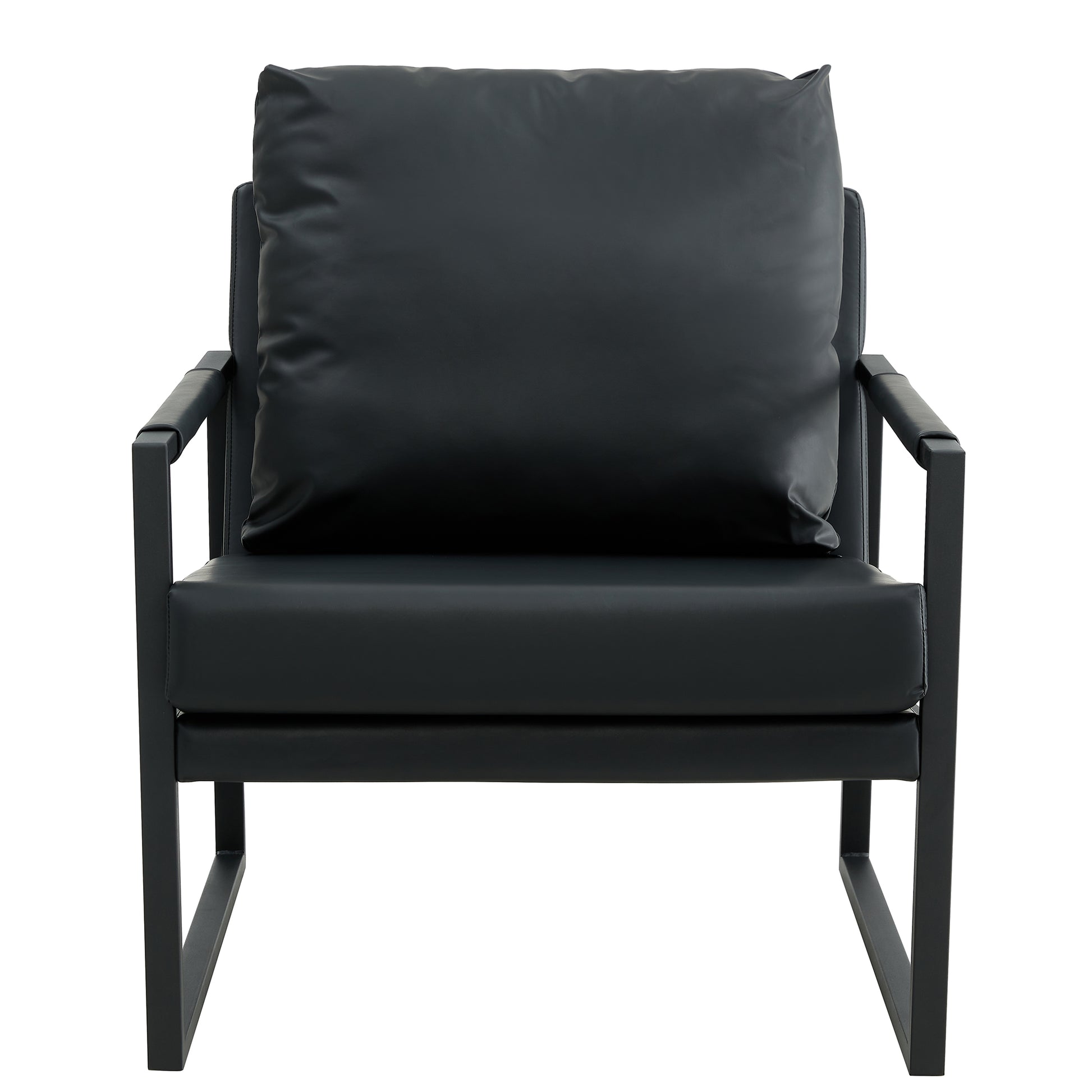 PU Leather Heavily Padded Backrest and Seat Cushion Accent Chair - Black