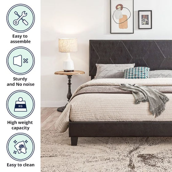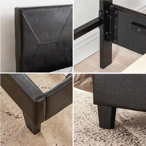 Queen-sized Upholstered Platform Bed Frame For Easy Assembly, Black, PU