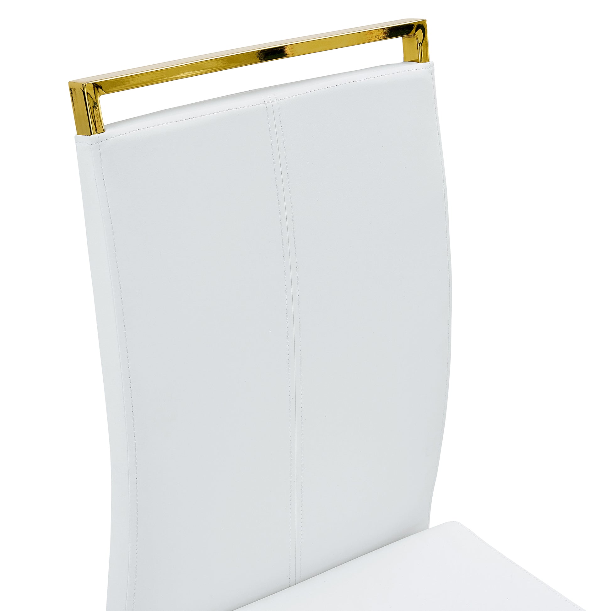 Featuring white double V-shaped supports and a sleek plating metal base, this dining table exudes modernity and style, creating a visually appealing centerpiece in your dining room.