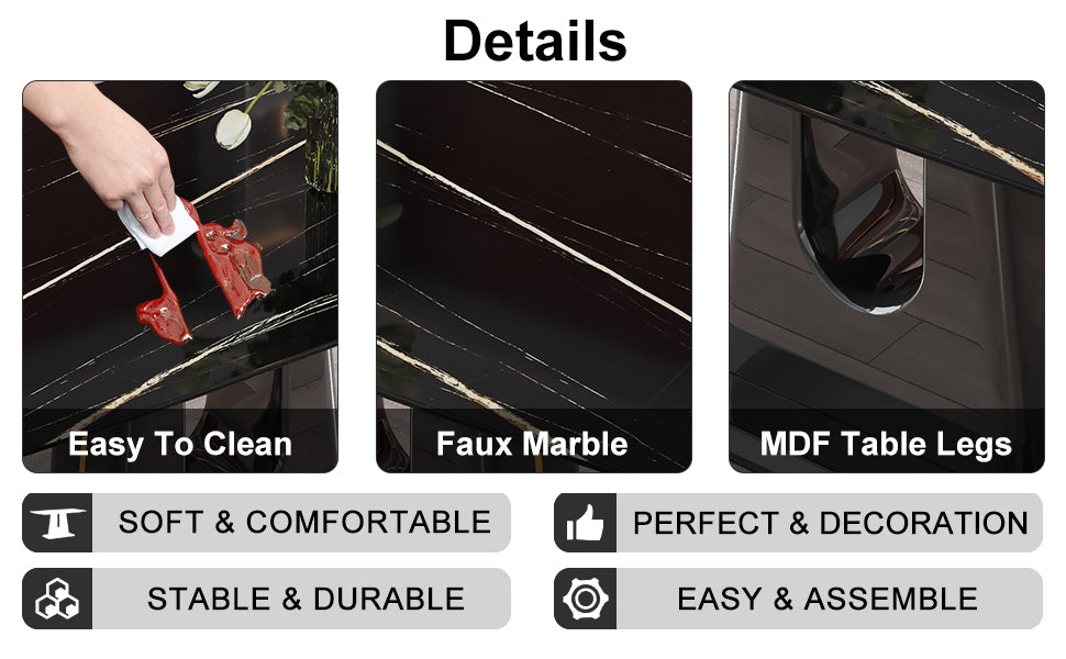 The MDF gray faux marble tabletop not only looks stunning but also offers easy maintenance. Simply wipe it clean with a damp cloth, and it will remain pristine and beautiful.