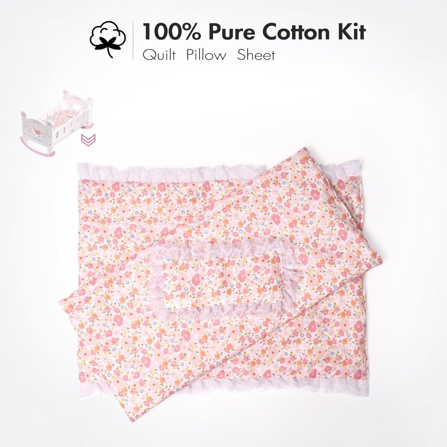 ROBOTIME Wooden Doll Cradle Rocking Baby Doll Crib Reversible Doll Bed For Girl