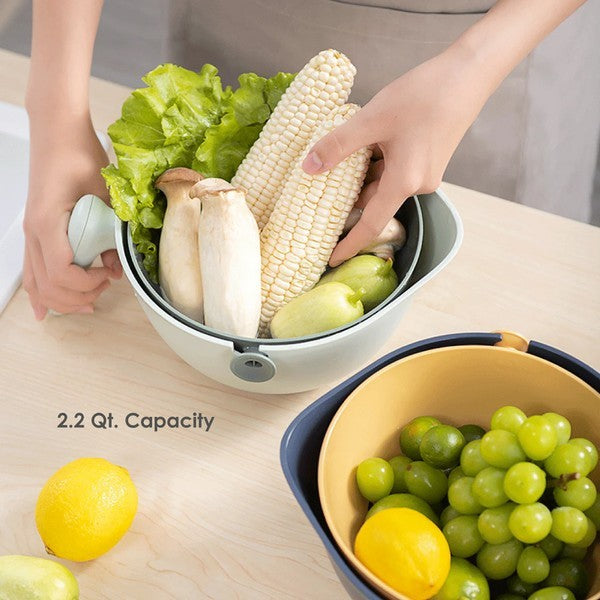 The basket serves as a food strainer, and automatically rotates to make it easy to drain with one hand. The double colander-and-bowl set are also separable so you can hold more food at a time.
