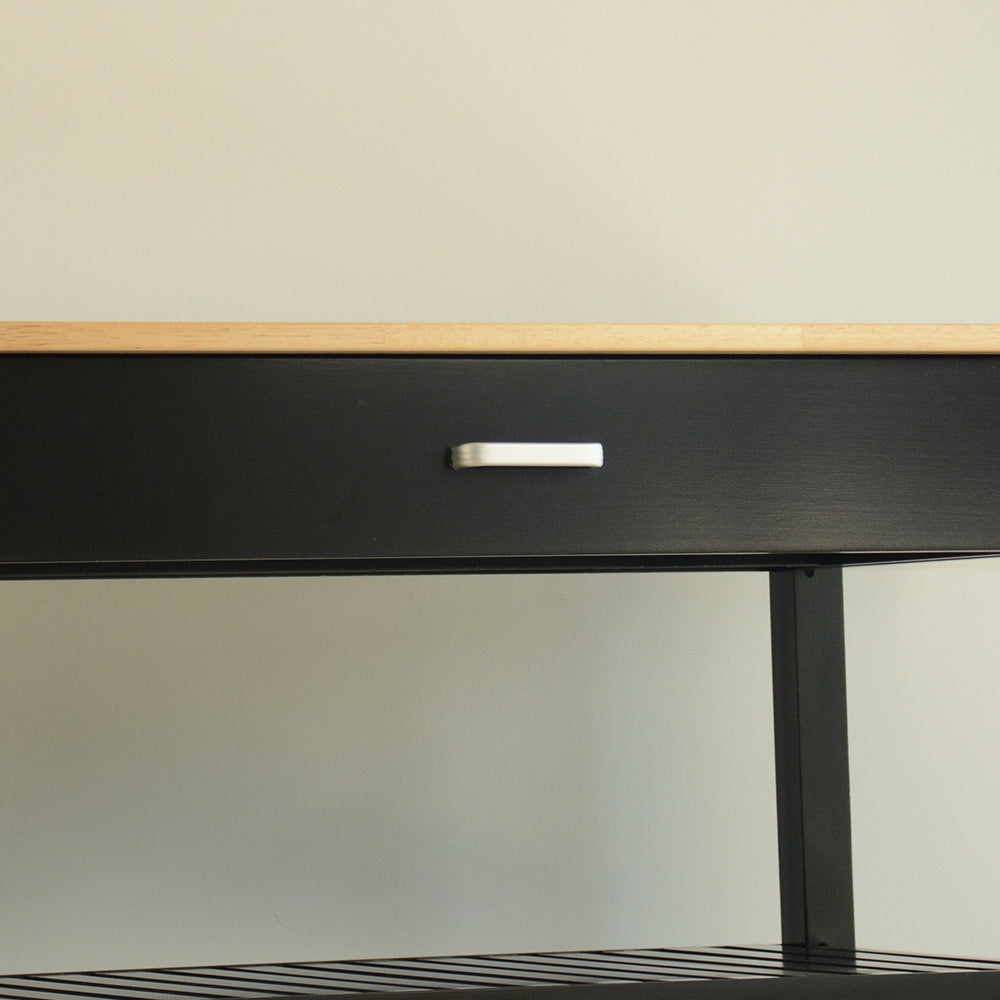 Rubber Wood Top Simple Design Mobile Kitchen Island with Two Lockable Wheels- Black