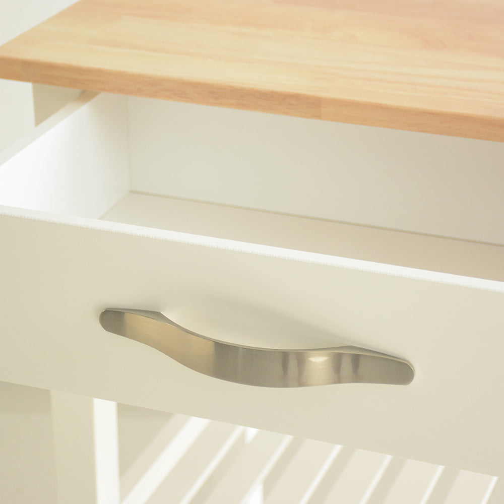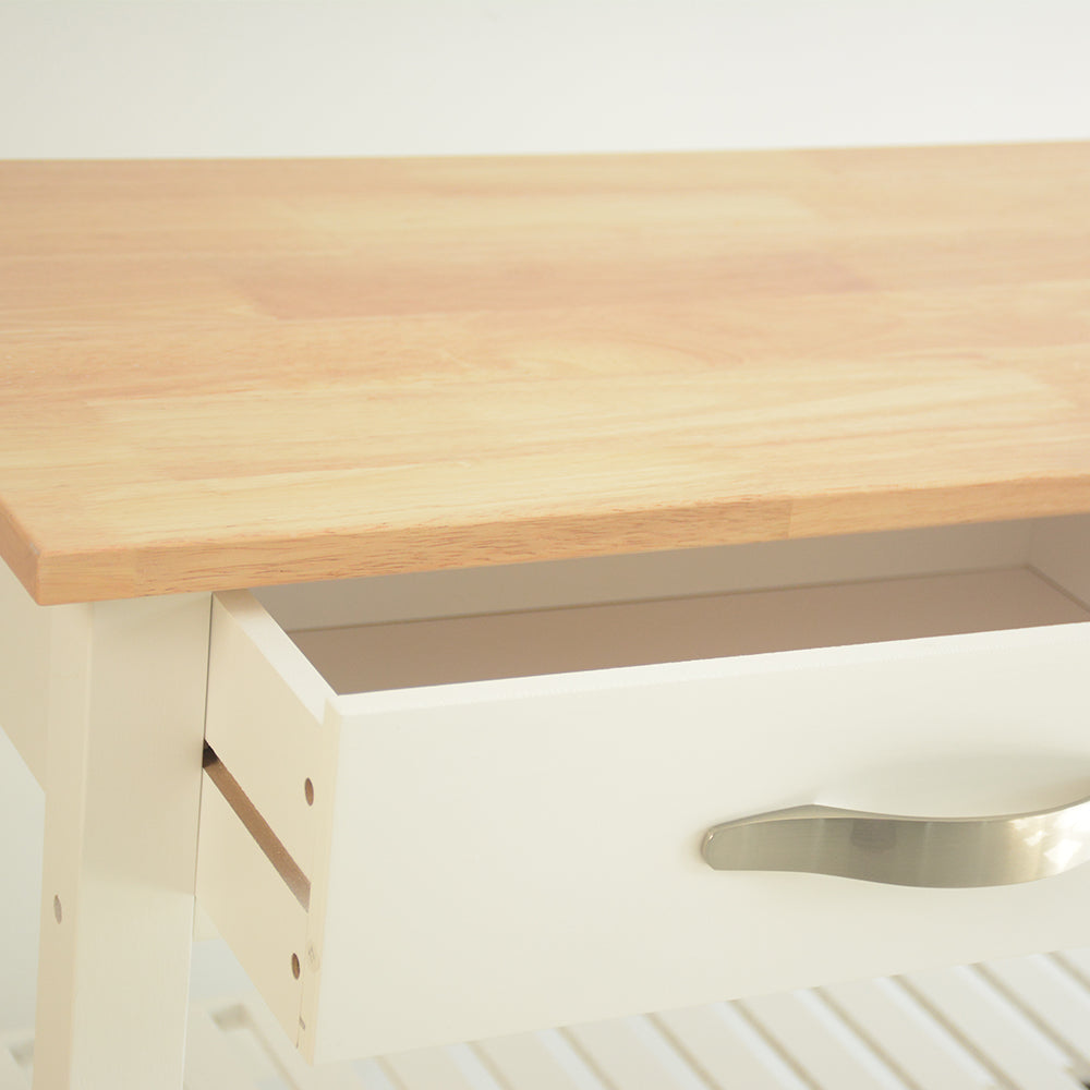 Rubber Wood Top Simple Design Mobile Kitchen Island with Two Lockable Wheels- White