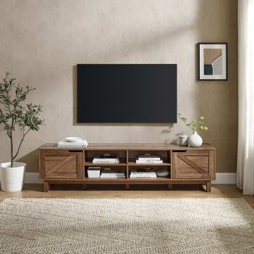 Rustic Barndoor Open-Storage TV Stand For TVs Up To 80 Inches Rustic Oak