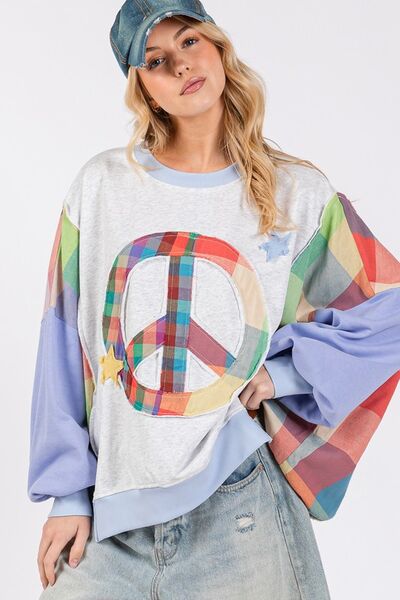 SAGE + FIG Contrast Peace Patch Dropped Shoulder Sweatshirt