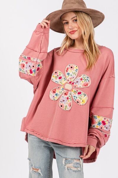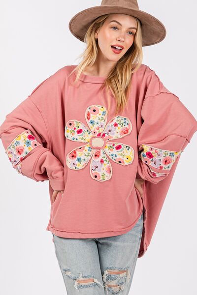 SAGE + FIG Daisy Patch Applique Long Sleeve Sweatshirt