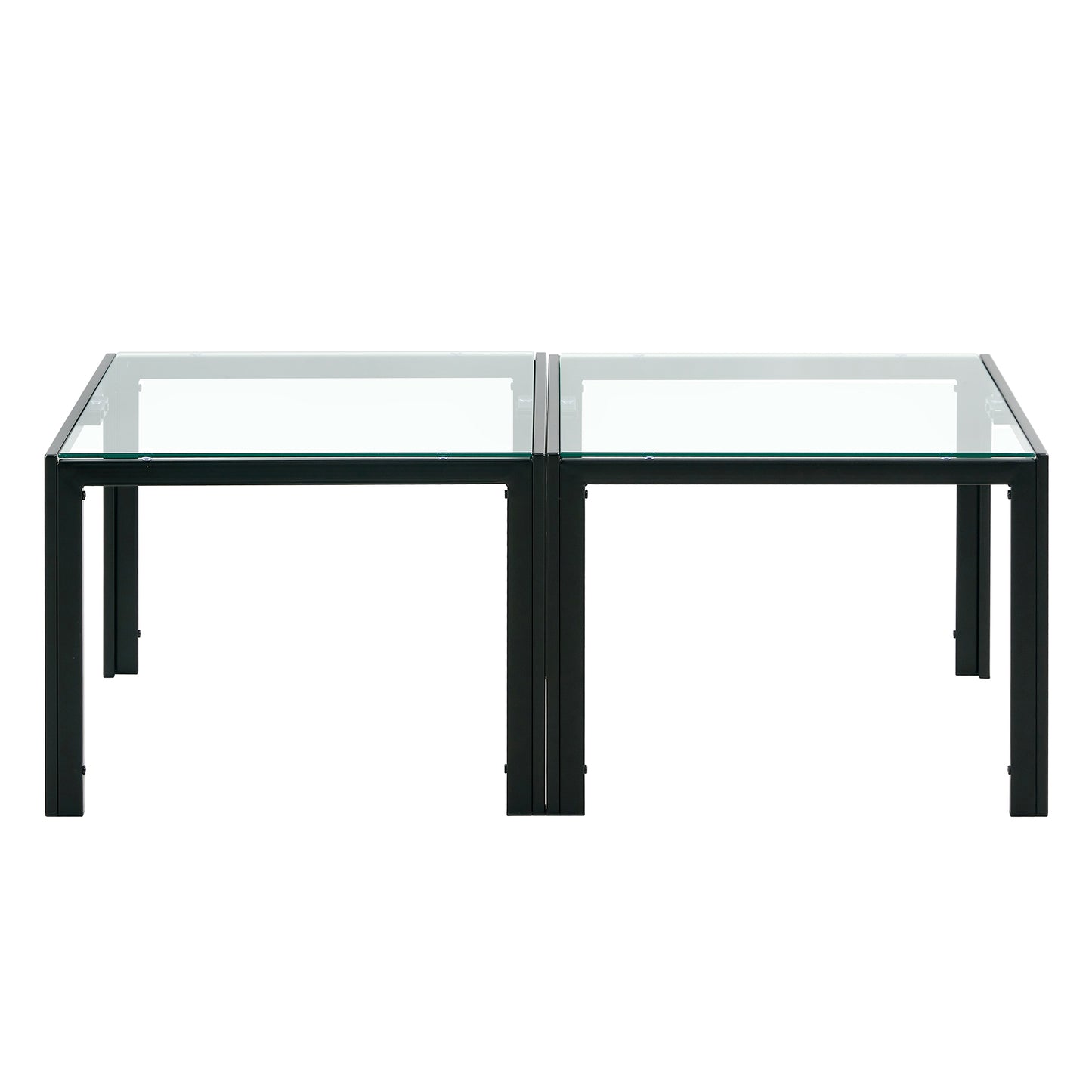 Set of 2 Coffee Table Set Modern Designed Square Tempered Glass Tea Table