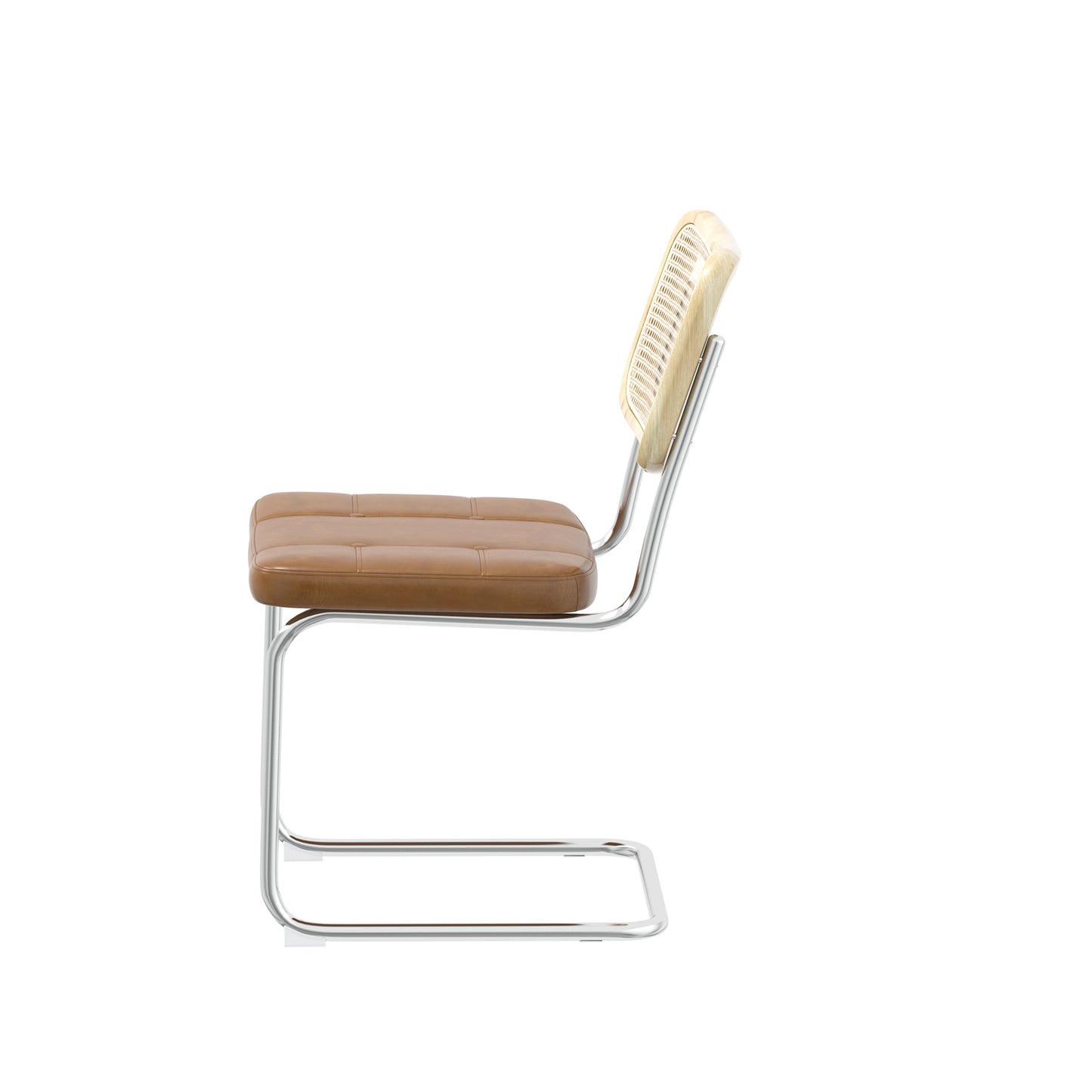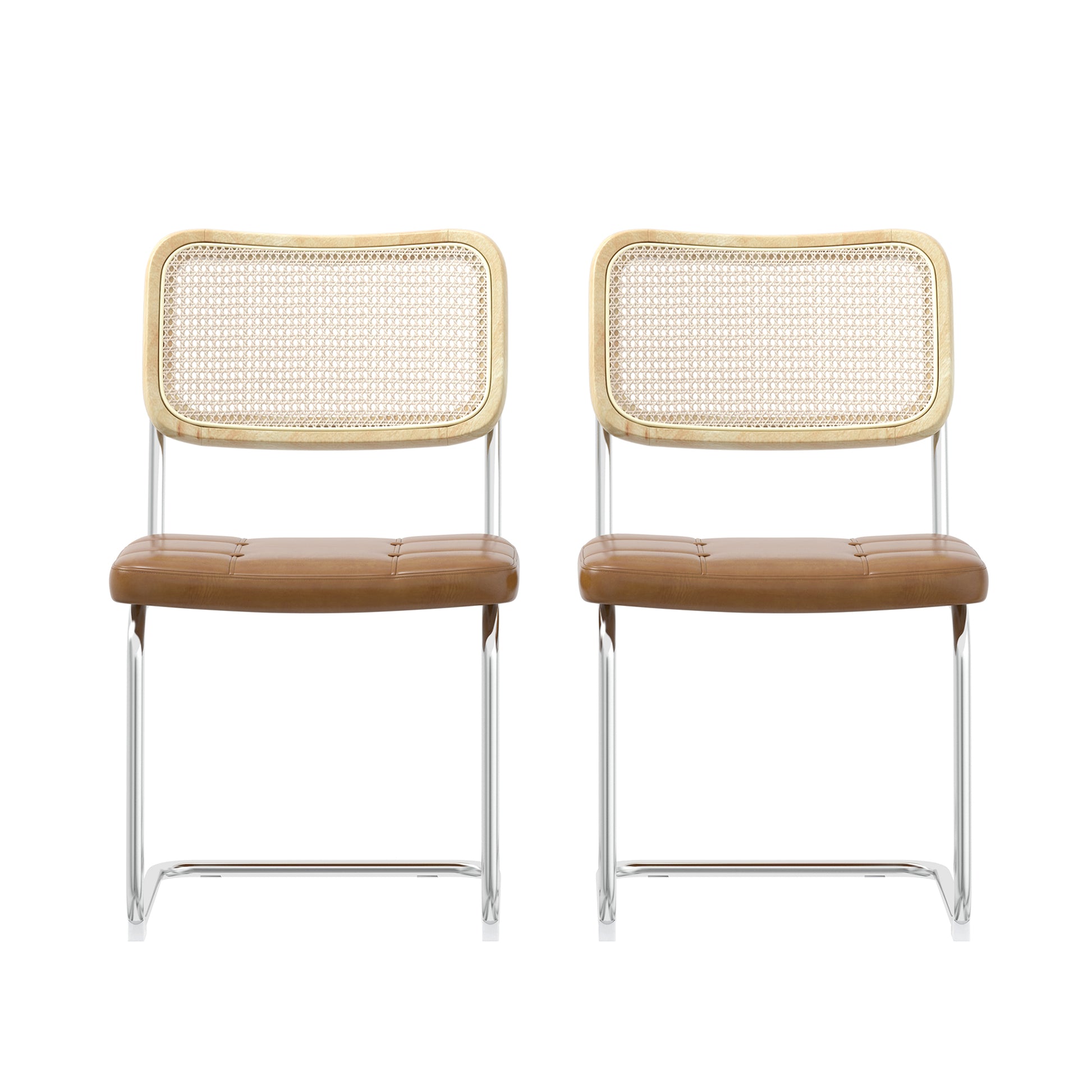 Set of 2 PU Leather Dining Chair with High-Density Sponge Rattan Chair- Brown