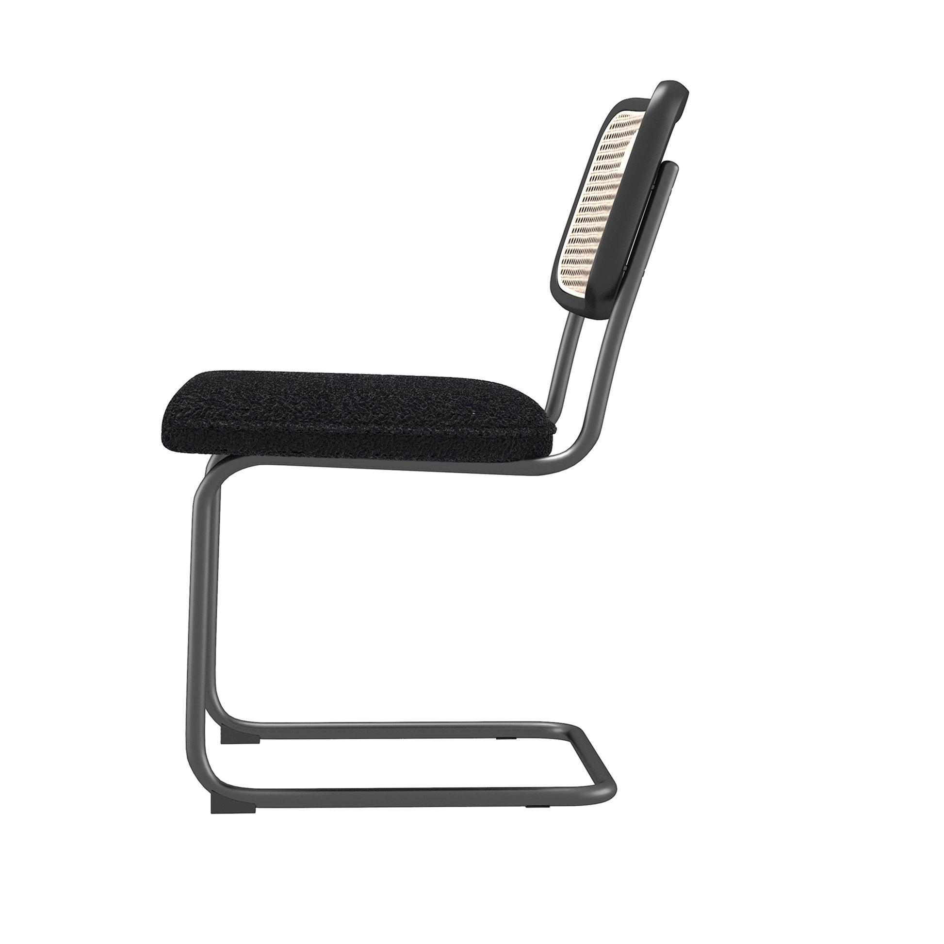 Set of 2 Teddy Velvet Dining Chair with High-Density Sponge Rattan Chair- Black