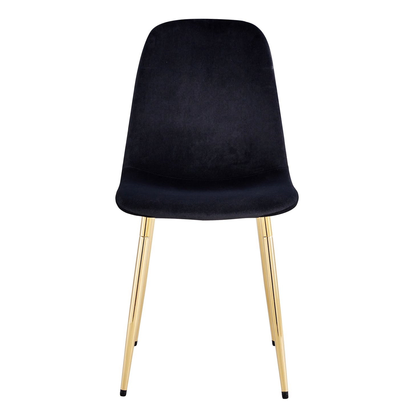 Set of 4 Modern Mid-Century Style Velvet Fabric Upholstered Chairs with Gold Legs- Black